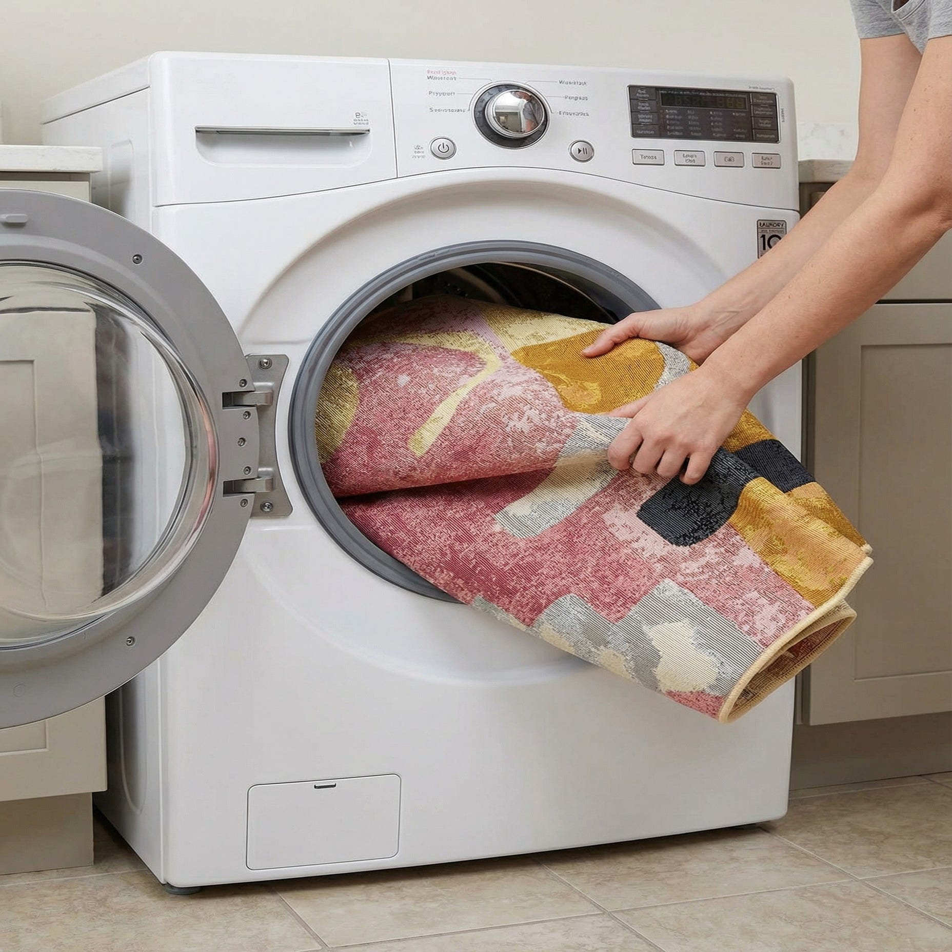 Machine-made of 100% polypropylene, this rug offers a low-pile feel that’s easy to place in both covered outdoor areas and high-traffic indoor spots. It pairs naturally with mid-century modern and contemporary furnishings, black metal frames, and warm wood tones, and also complements woven rattan, brass accents and textured linens. Use it to anchor a small seating cluster on a patio or balcony, define a sunroom reading nook, or add a colorful focal point to a modern living space or dining corner.