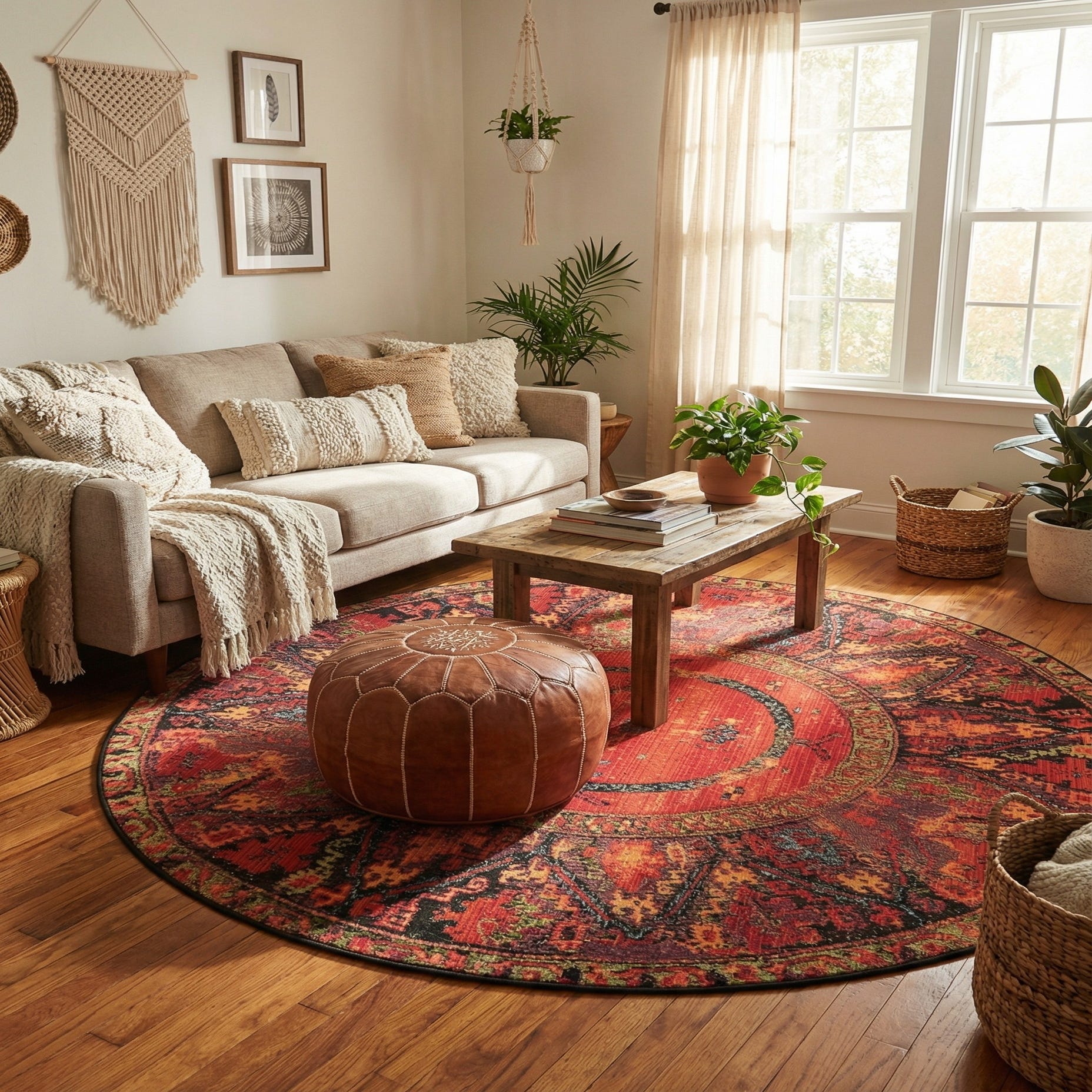 5' x 5' Washable Tribal Indoor / Outdoor Round Rug