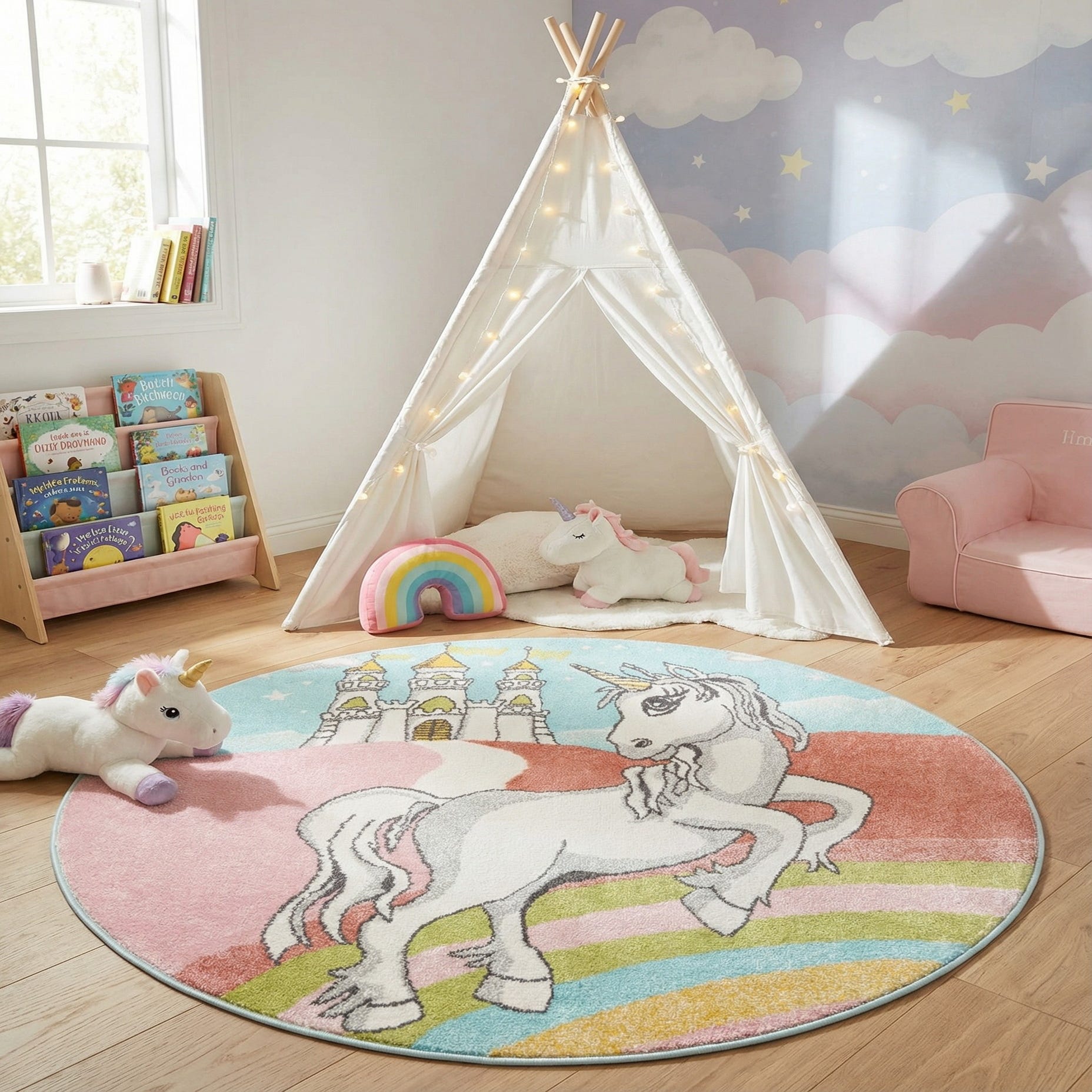 5' 3 x 5' 3 Unicorn Whimsy Kids Round Rug