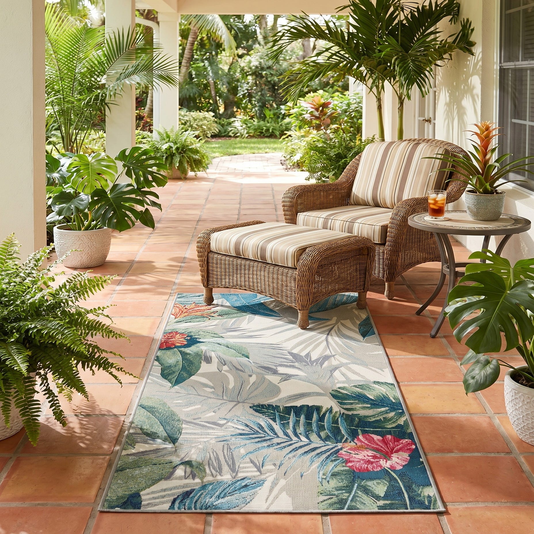 2' 7 x 5' 3 Easy-Clean Botanical Indoor / Outdoor Runner Rug