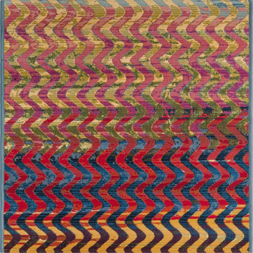 This Outdoor Modern collection 5 Ft Runner rug showcases a vibrant and dynamic wave pattern that effortlessly enhances contemporary outdoor spaces. Woven with a multi-colored palette that includes beige, blue, brown, cream, green, red, navy blue, olive, and orange, the design provides a whimsical yet structured aesthetic. Machine woven of 100% polypropylene, the rug offers durability for high-traffic areas and resistance to the elements.