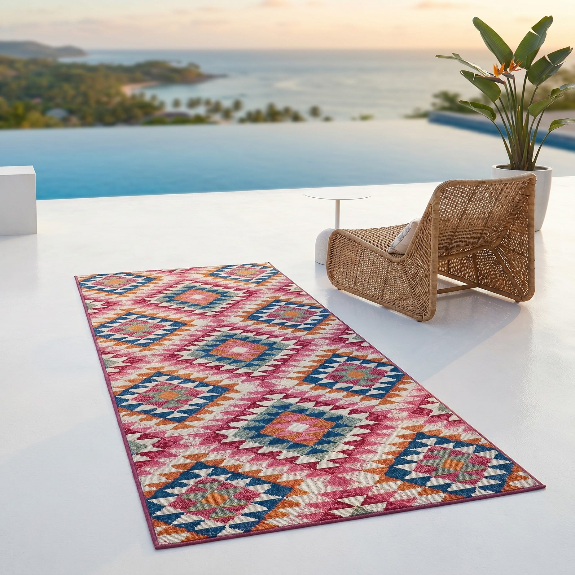 2' 7 x 5' 3 Easy-Clean Southwestern Indoor / Outdoor Runner Rug