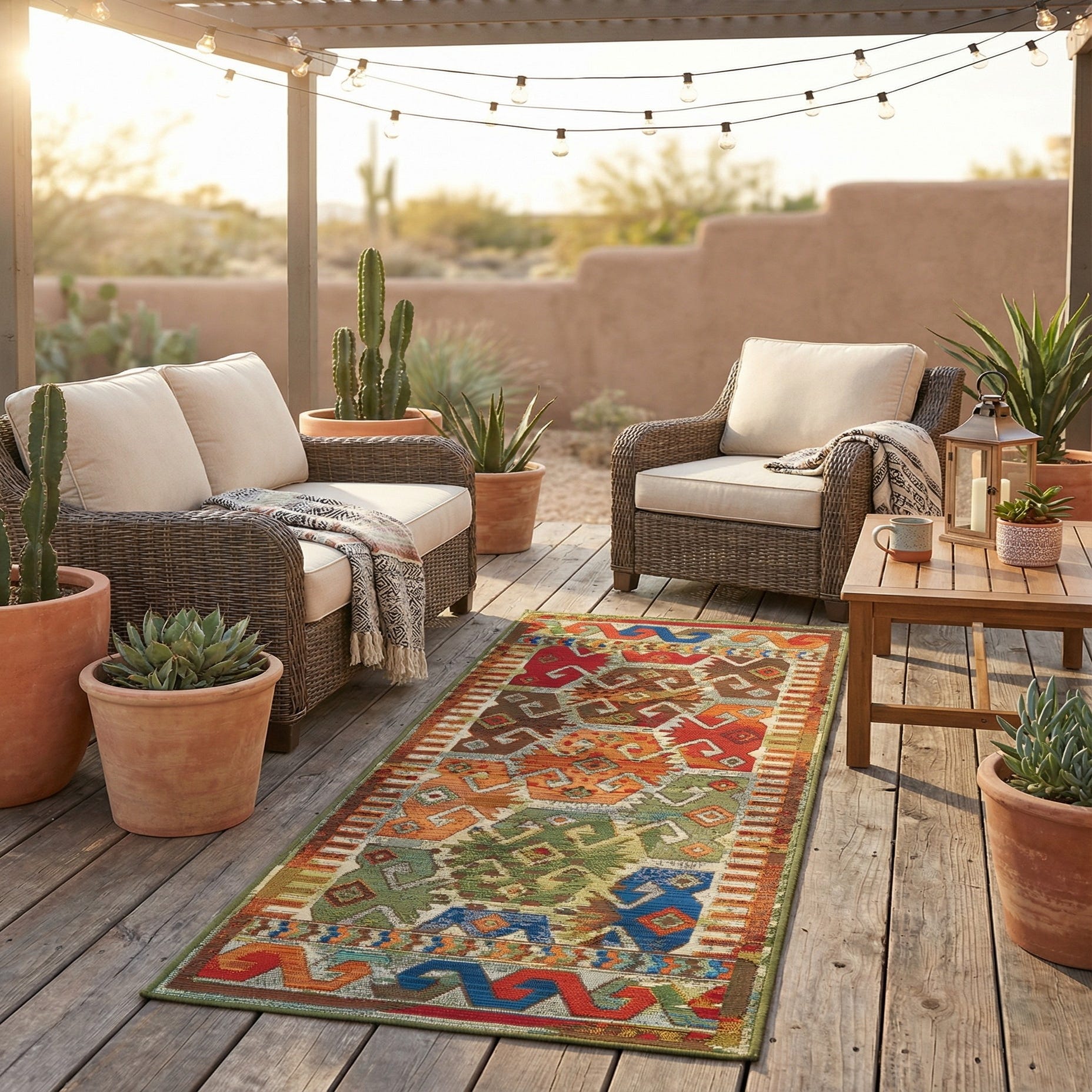 2' x 5' Washable Southwestern Indoor / Outdoor Runner Rug