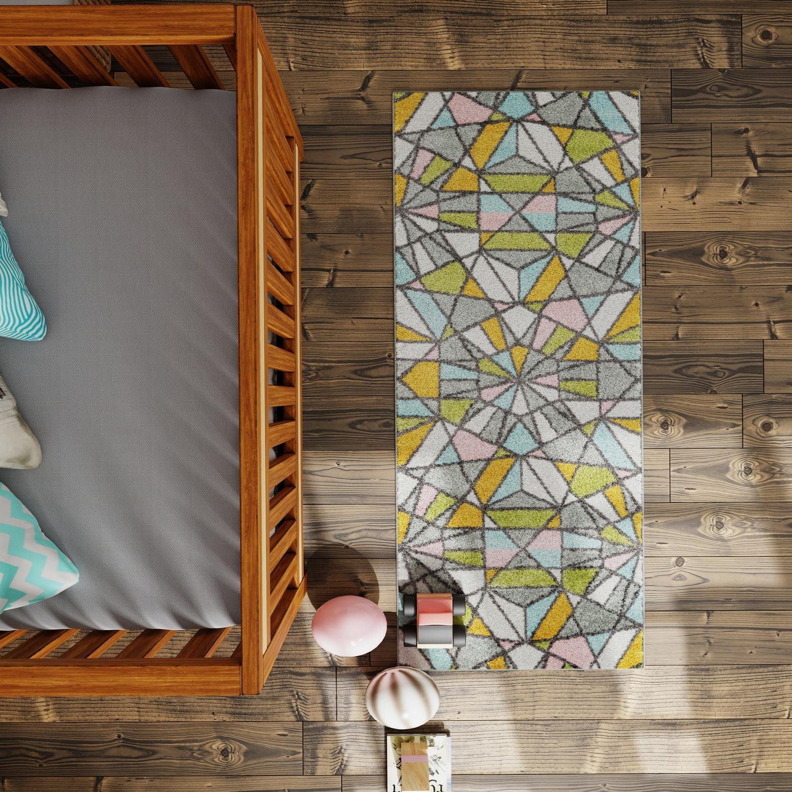 This runner works well in entryways, hallways, alongside a bed, or down a playroom aisle where color and pattern can energize the space. Pair it with light-gray or white walls and natural wood furniture for a contemporary look, or use it to add a cheerful accent to Scandinavian and mid-century modern rooms. The mix of pastels and neutrals also makes it easy to coordinate with colorful cushions, wall art, or simple storage pieces for a cohesive, lived-in feel.