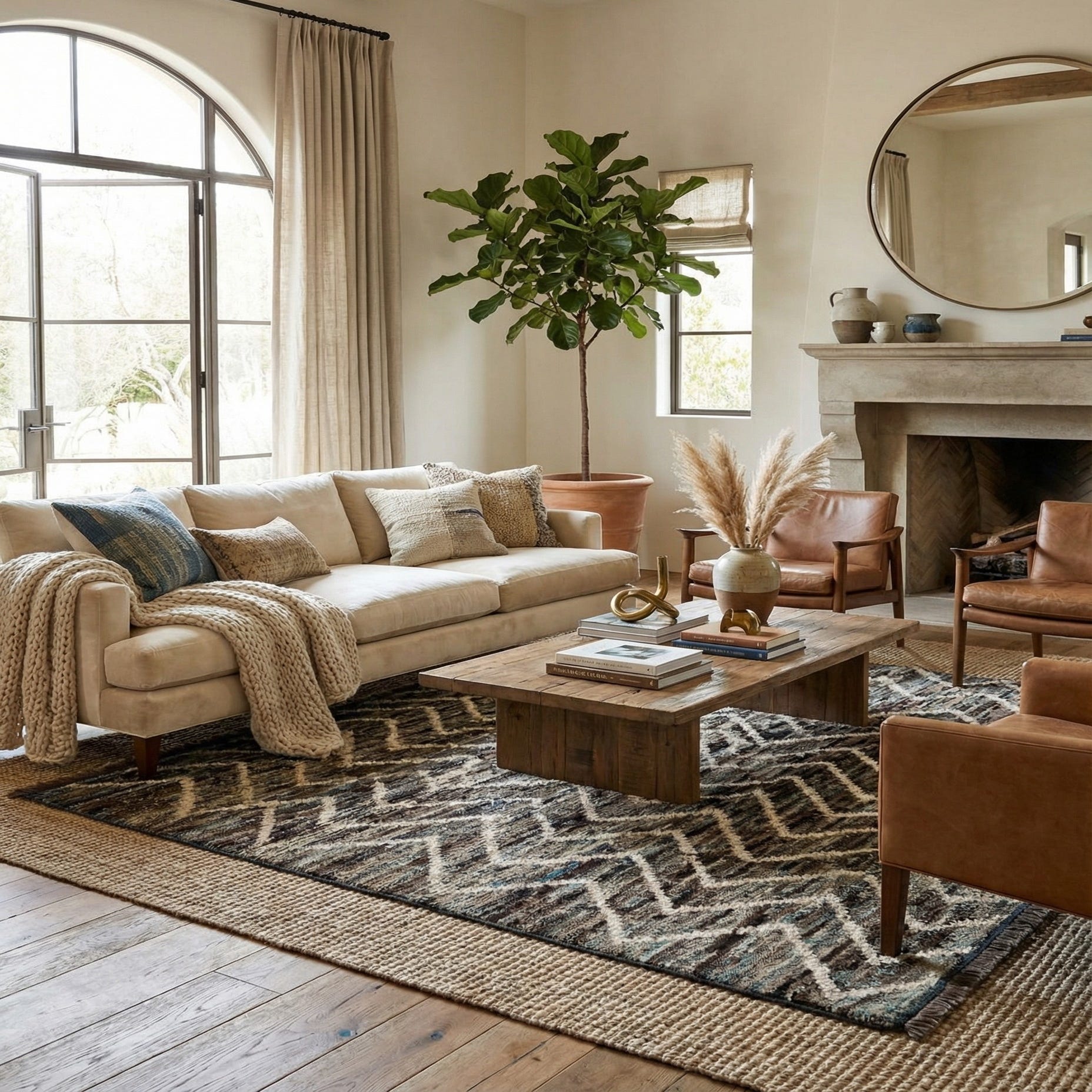 Primary color is Multi. Colors in this rug include: Multi, Beige, Black, Brown, Cream, Light Brown.