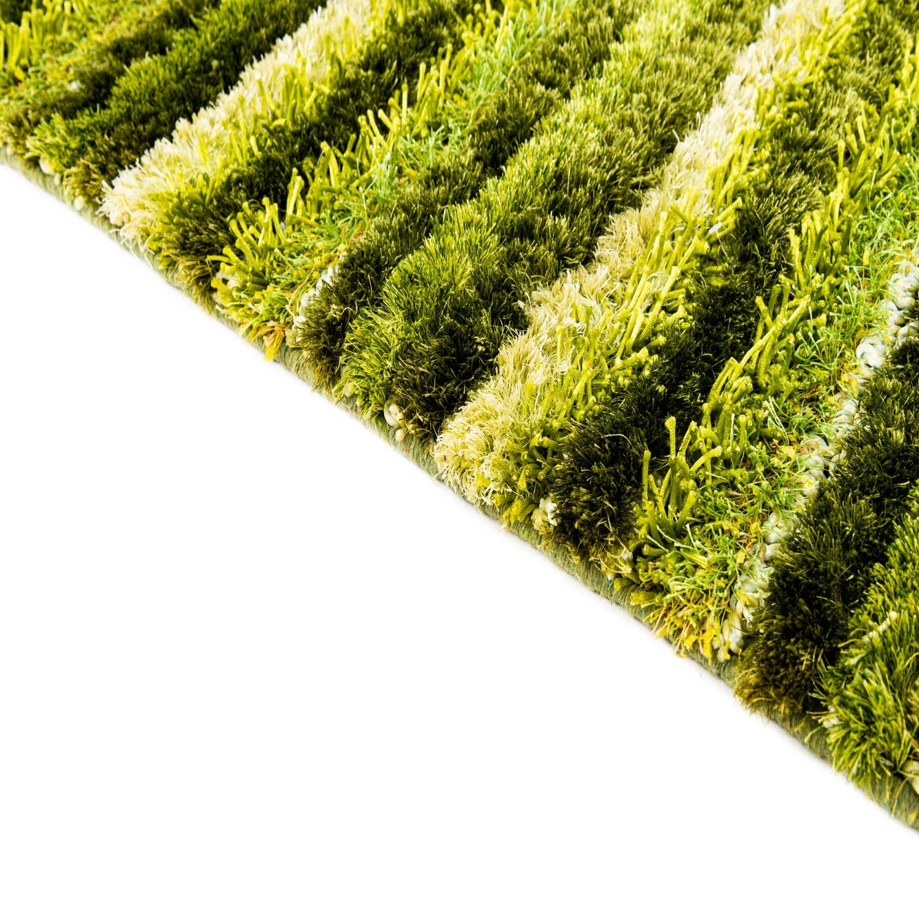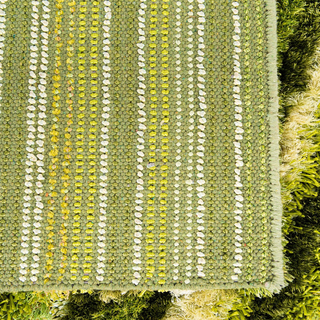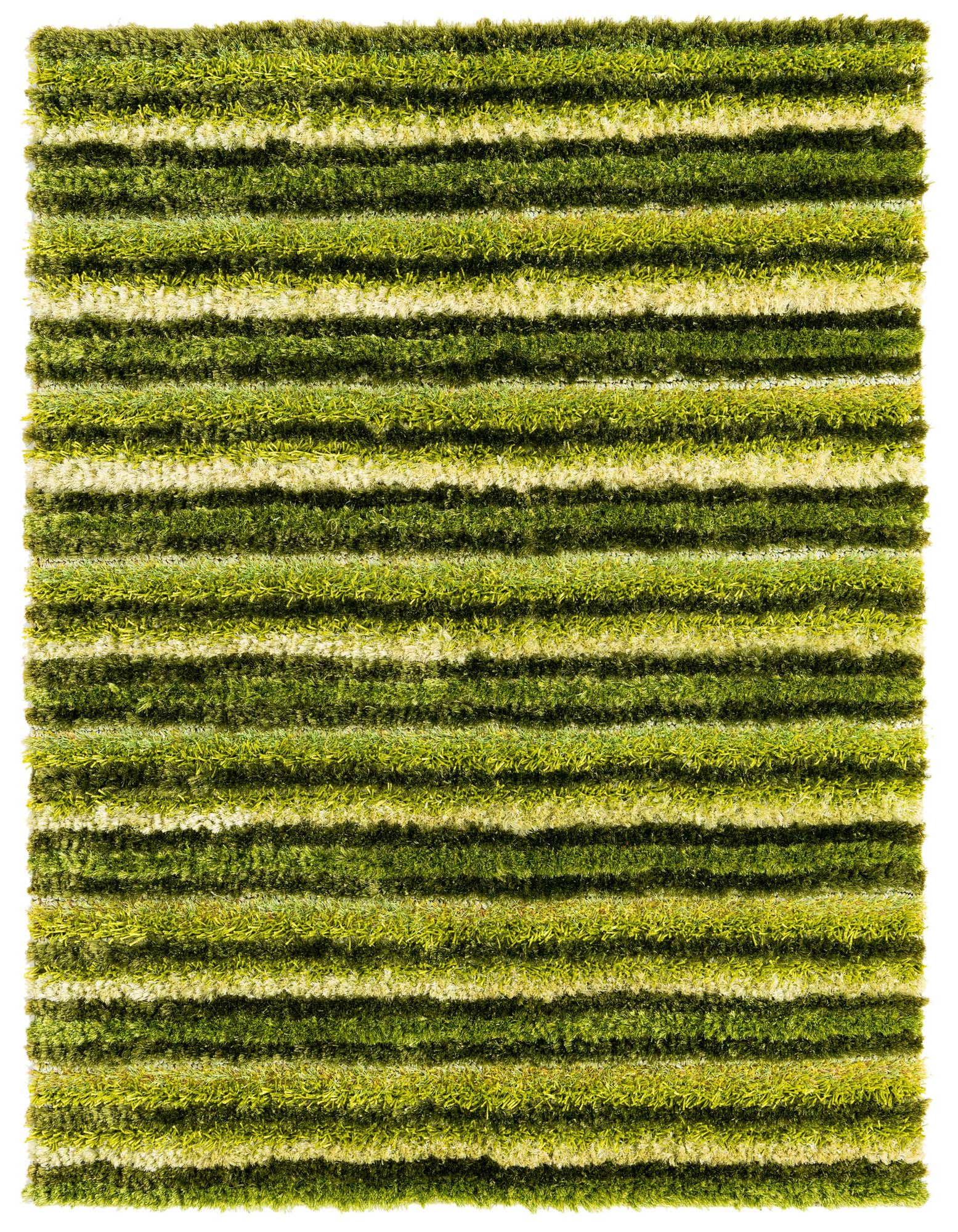 The Multi-Tone Shag Collection offers a machine-woven polypropylene rug in a 5x7 size, designed to integrate seamlessly with a variety of interior spaces. This rug features a lively play of shades, including green, light green, olive, and other multi-tonal accents set against a multi-colored background. Its striped pattern provides a sense of order and rhythm, making it a visually engaging centerpiece.