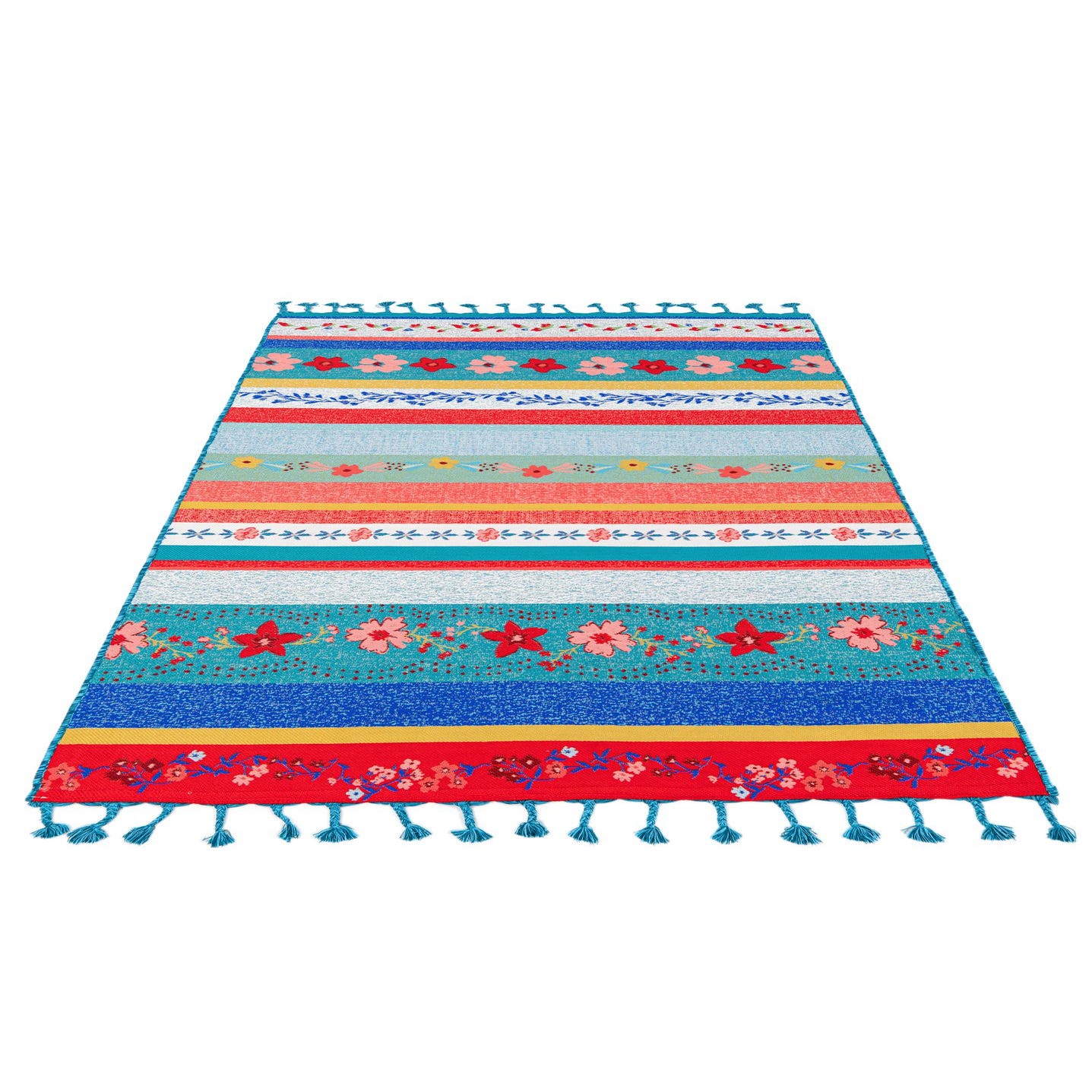 Primary color is Multi. Colors in this rug include: Multi, Blue, Ivory, Red, Pink, Gold, Green, Navy Blue.
