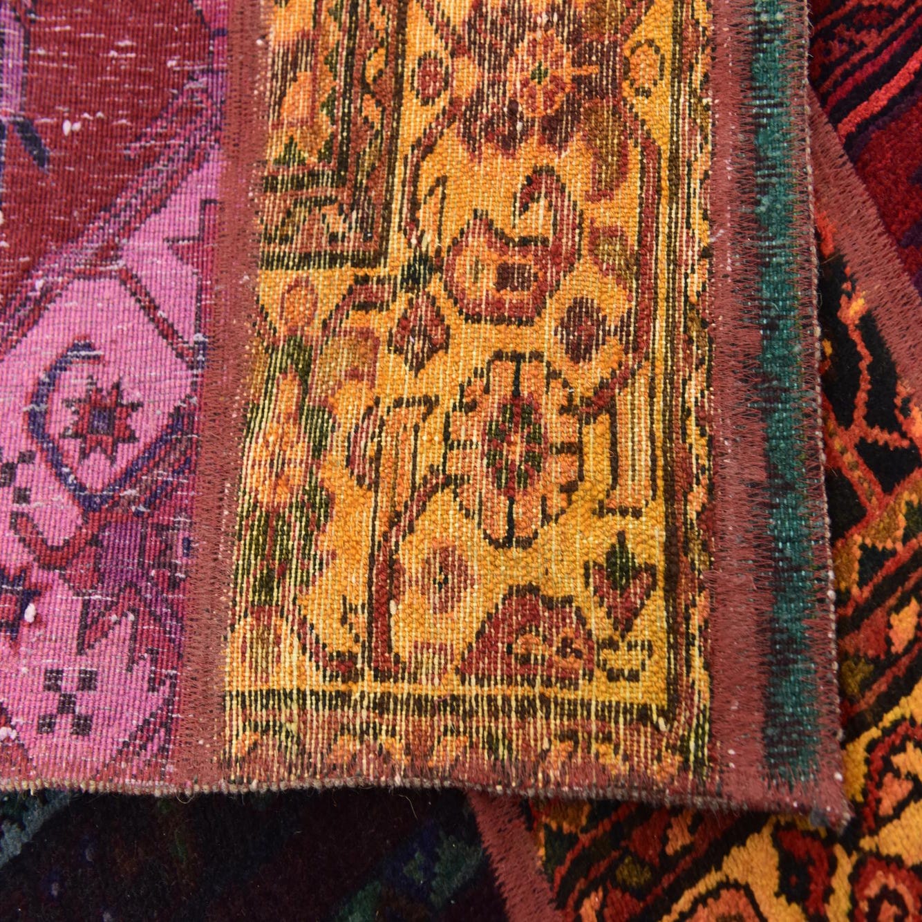 This Persian Ultra Vintage rug is an antique Persian Rug that has been washed, over-dyed, and then shaved down to a low pile. Look at the detail pictures to fully appreciate the uniqueness of this piece.