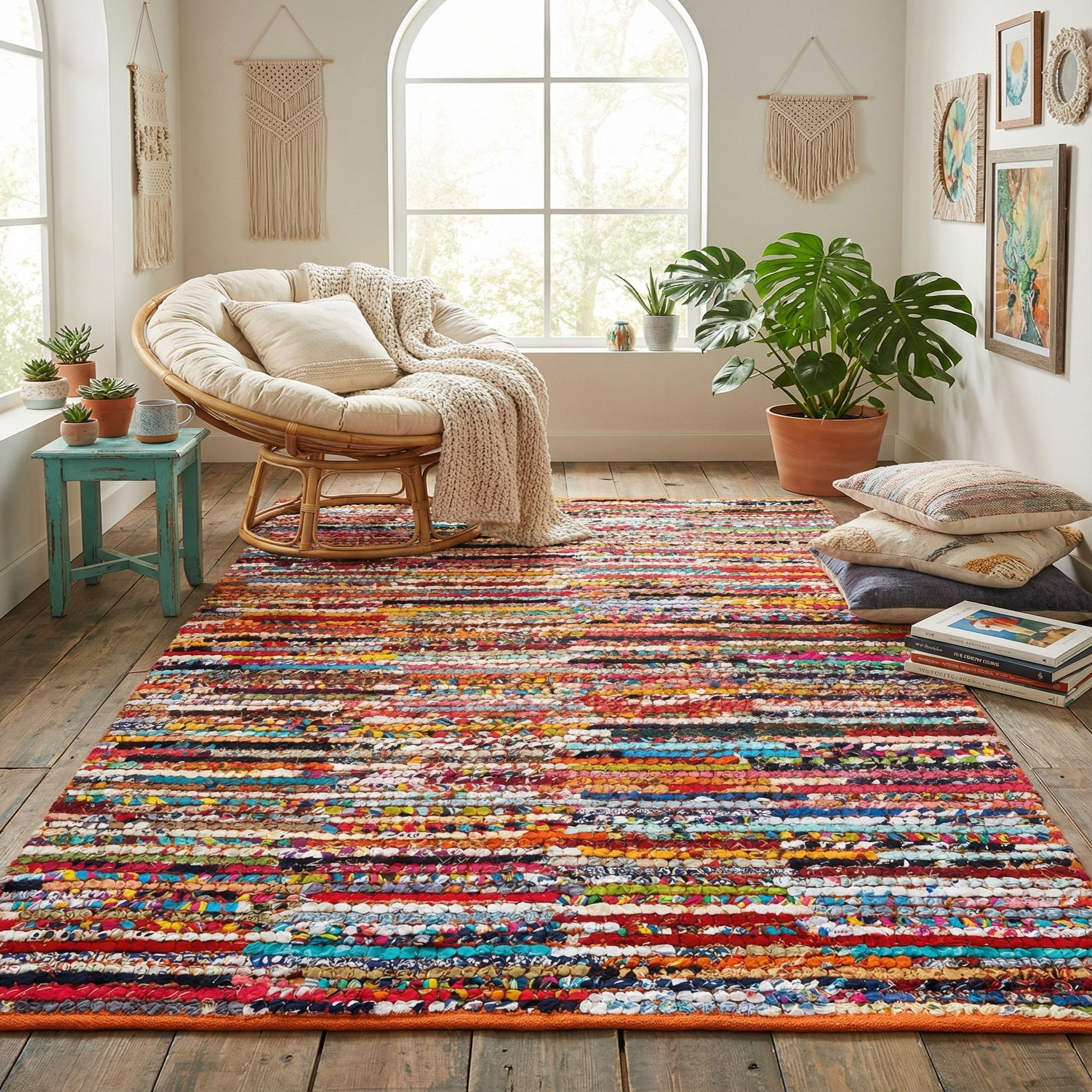 Hand-braided from 100% cotton, this rug brings casual, crafted character to a room and complements a wide range of interiors. Use it to add color to a neutral living area, layer it under a low coffee table in a bohemian seating group, or place it in an entryway to introduce warmth and pattern. It also pairs nicely with natural woods, leather or rattan pieces and can anchor a colorful, eclectic space or act as a vibrant accent against clean, modern furnishings.