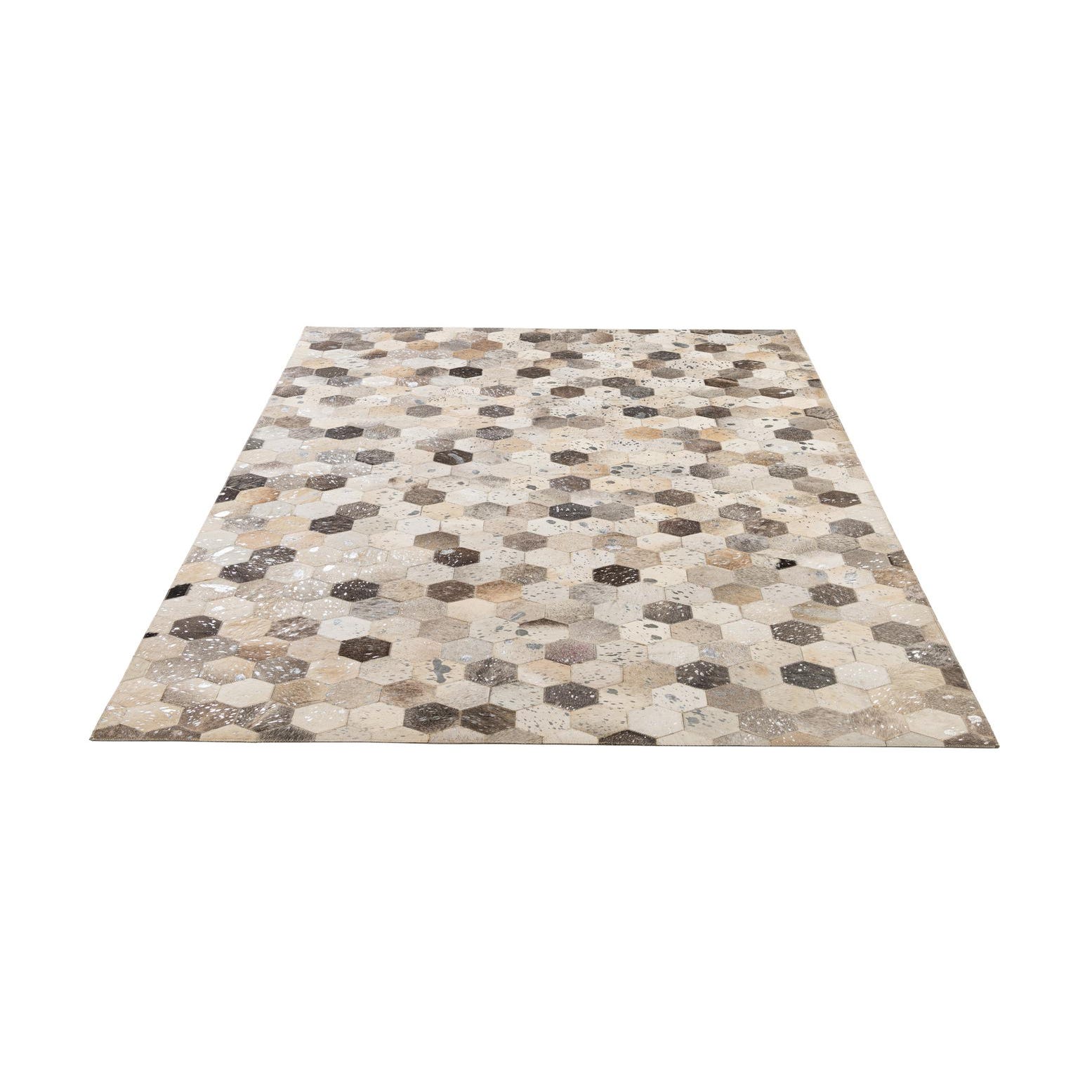 A 5x8 rectangular Cowhide Patchwork rug featuring a modern hexagonal pattern in multi-colored natural tones.