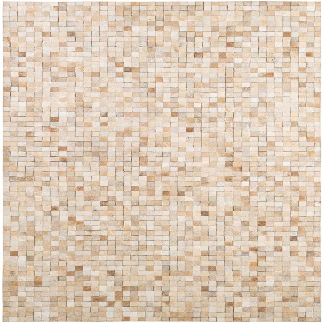 A 5x8 rectangular Cowhide Patchwork rug featuring a mosaic of multi-colored natural cowhide squares, ideal for a modern living room.