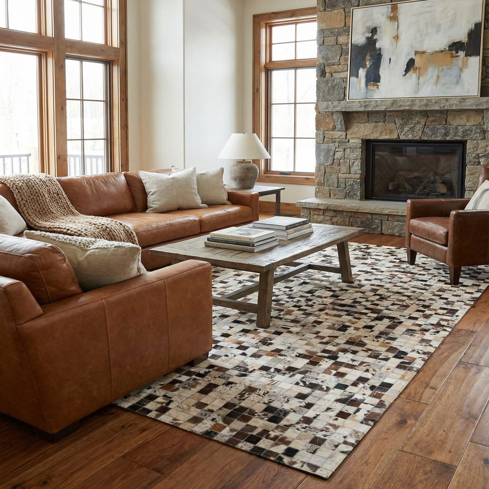 While retaining a sophisticated appearance, the rug's durability makes it a practical choice for areas with moderate foot traffic. The Cowhide Collection rug integrates effortlessly with a range of palettes and settings, bringing warmth and authenticity to any room it graces.