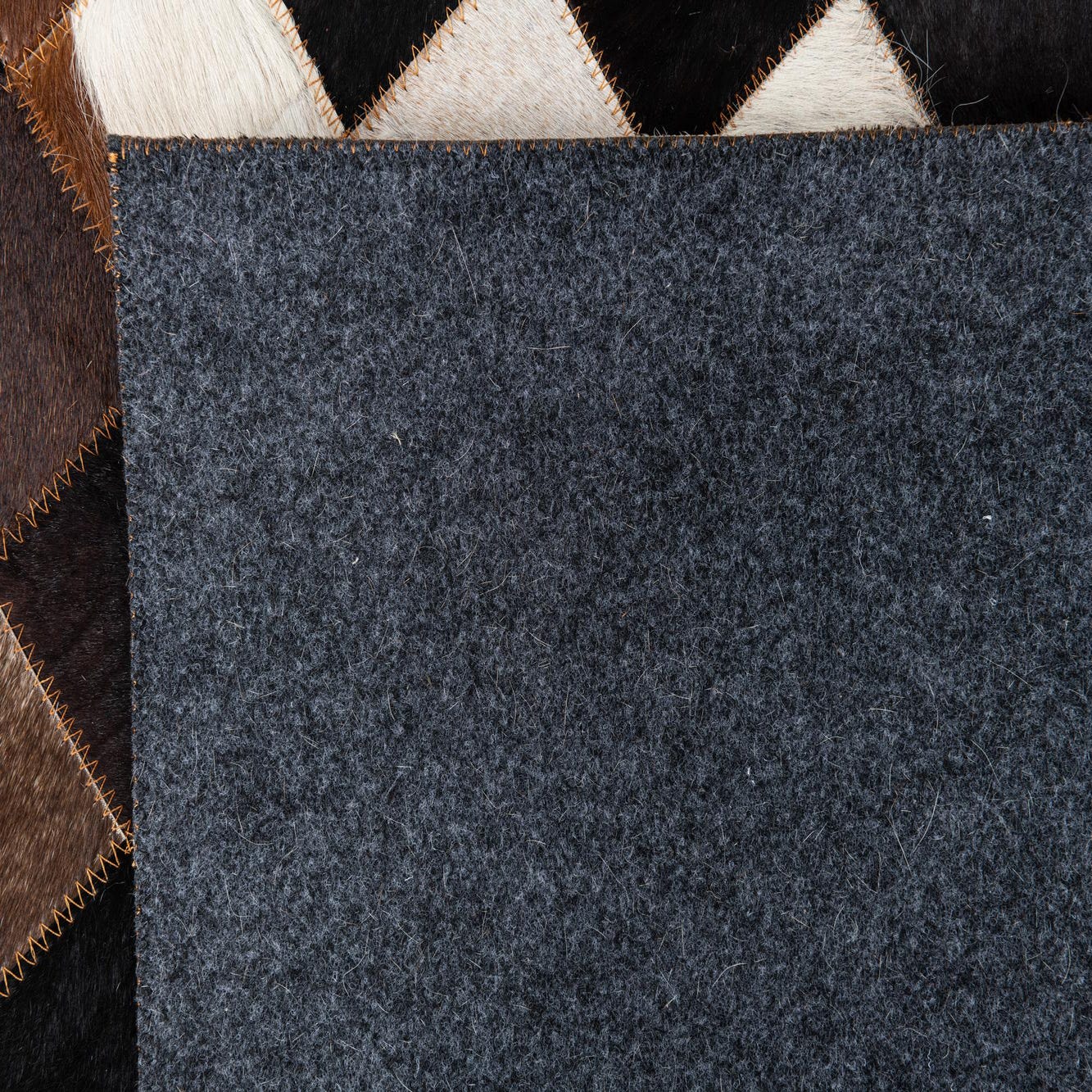 Crafted with precision, this rug displays the durability and distinctiveness of its cowhide and leather composition, which lends depth and an organic feel to the piece. The bold geometric pattern and earthy hues allow for versatility in styling, making the rug suitable for a range of interior design scenarios. It would particularly complement spaces that embrace modern farmhouse aesthetics, eclectic decor, or anywhere the intention is to add a touch of rustic elegance.