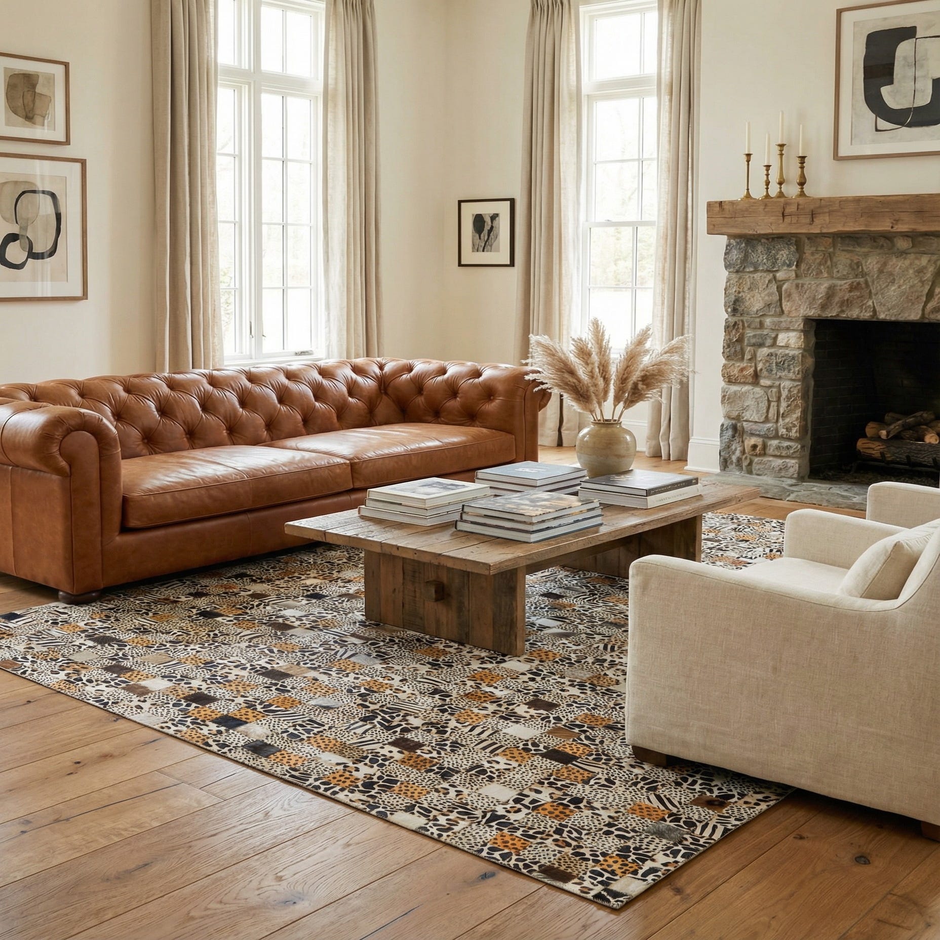5' 1 x 8' Cowhide Leather Rug