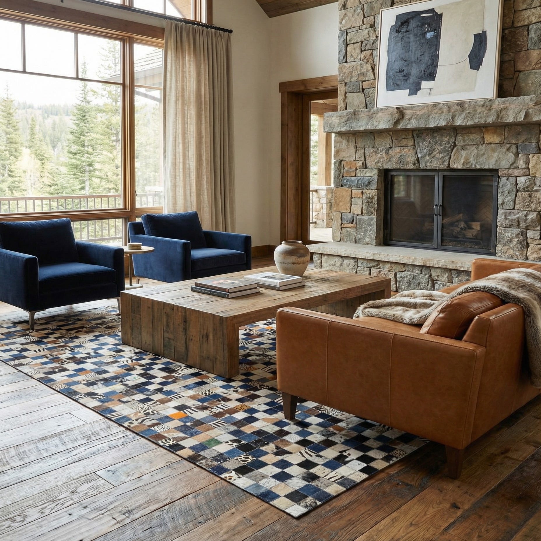 This Cowhide Leather rug would complement a variety of decor styles, from traditional interiors that embrace a timeless aesthetic to contemporary spaces seeking a bold statement piece. Its array of colors and natural patterns allows it to blend seamlessly with wooden furniture and earthy color schemes. Or, it could serve as a captivating centerpiece in a minimalist, modern setting where its intricate details can be fully appreciated.