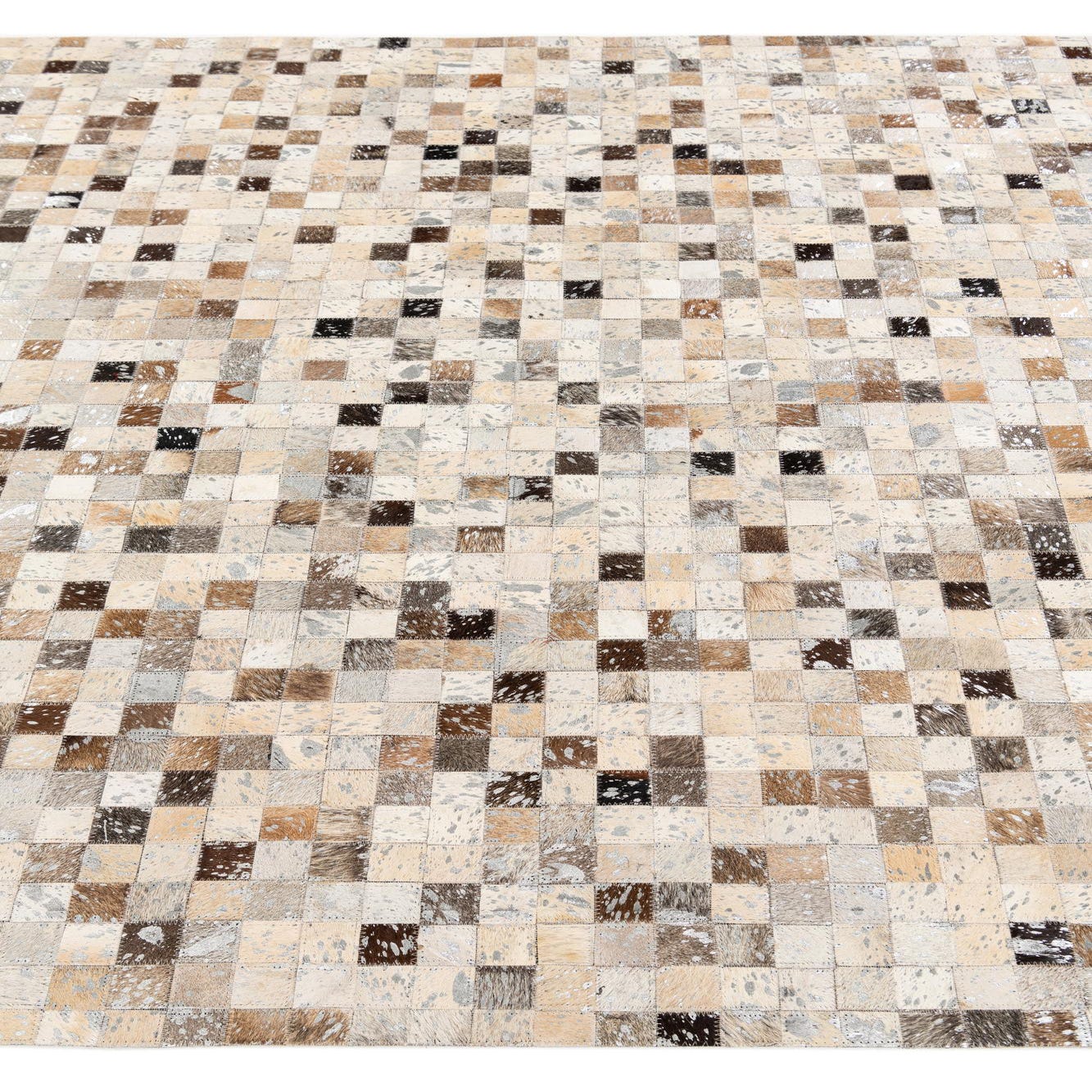 A 5x8 rectangular Cowhide Stocks rug from Rugs.com featuring a modern patchwork of multi-colored cowhide and leather squares.