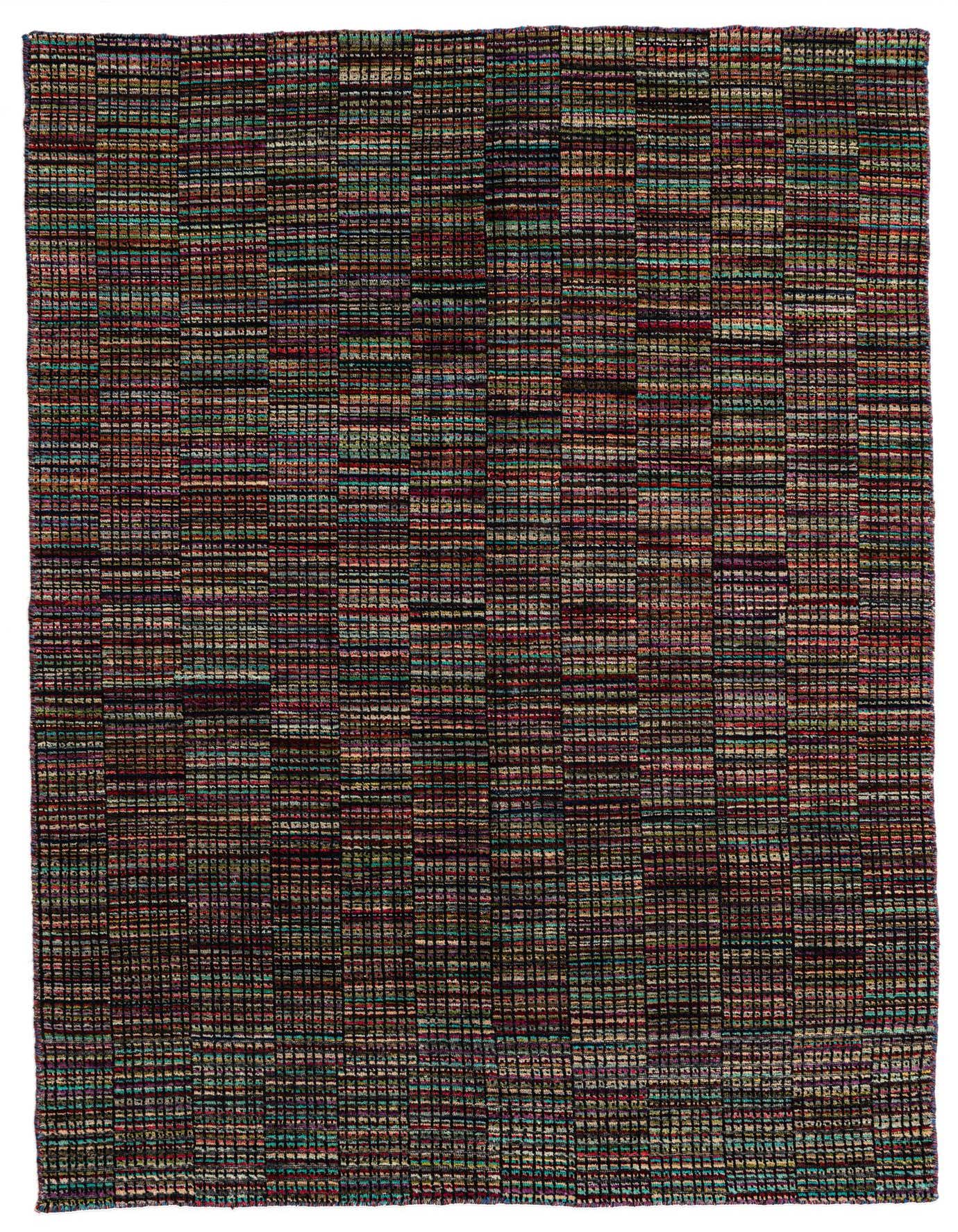 Primary color is Multi. Colors in this rug include: Multi, Black, Blue, Beige, Brown, Candy, Burgundy.