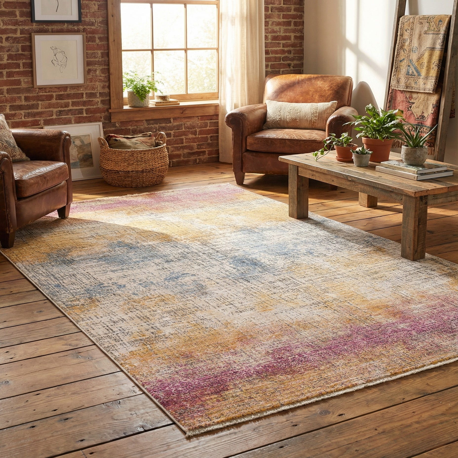 This versatile palette works well in contemporary and transitional interiors—pair it with a neutral sofa to introduce color without overpowering the room, place it beneath a mid-century dining table to warm the floor, or use it in a bedroom to bring together pastel bedding and gray accents. It also complements eclectic or bohemian schemes when combined with natural woods, textured textiles and mixed-metal accents, making it suitable for living rooms, home offices or casual dining areas where a comfortable, layered look is desired.