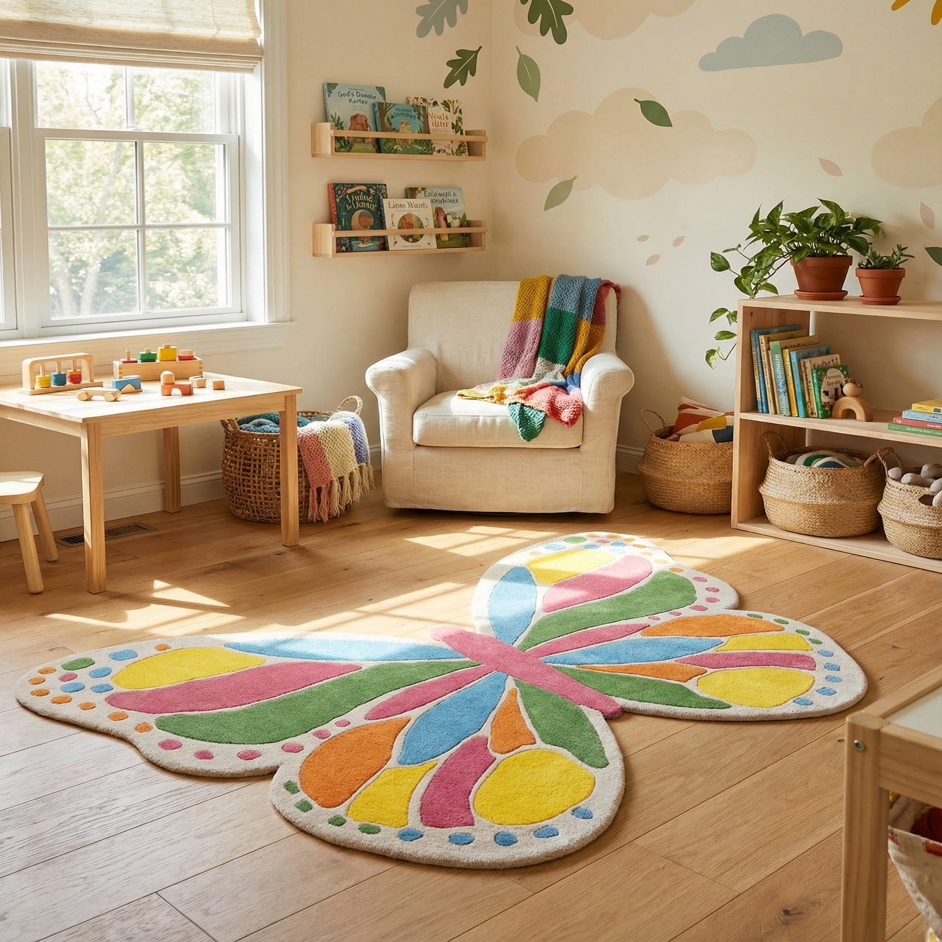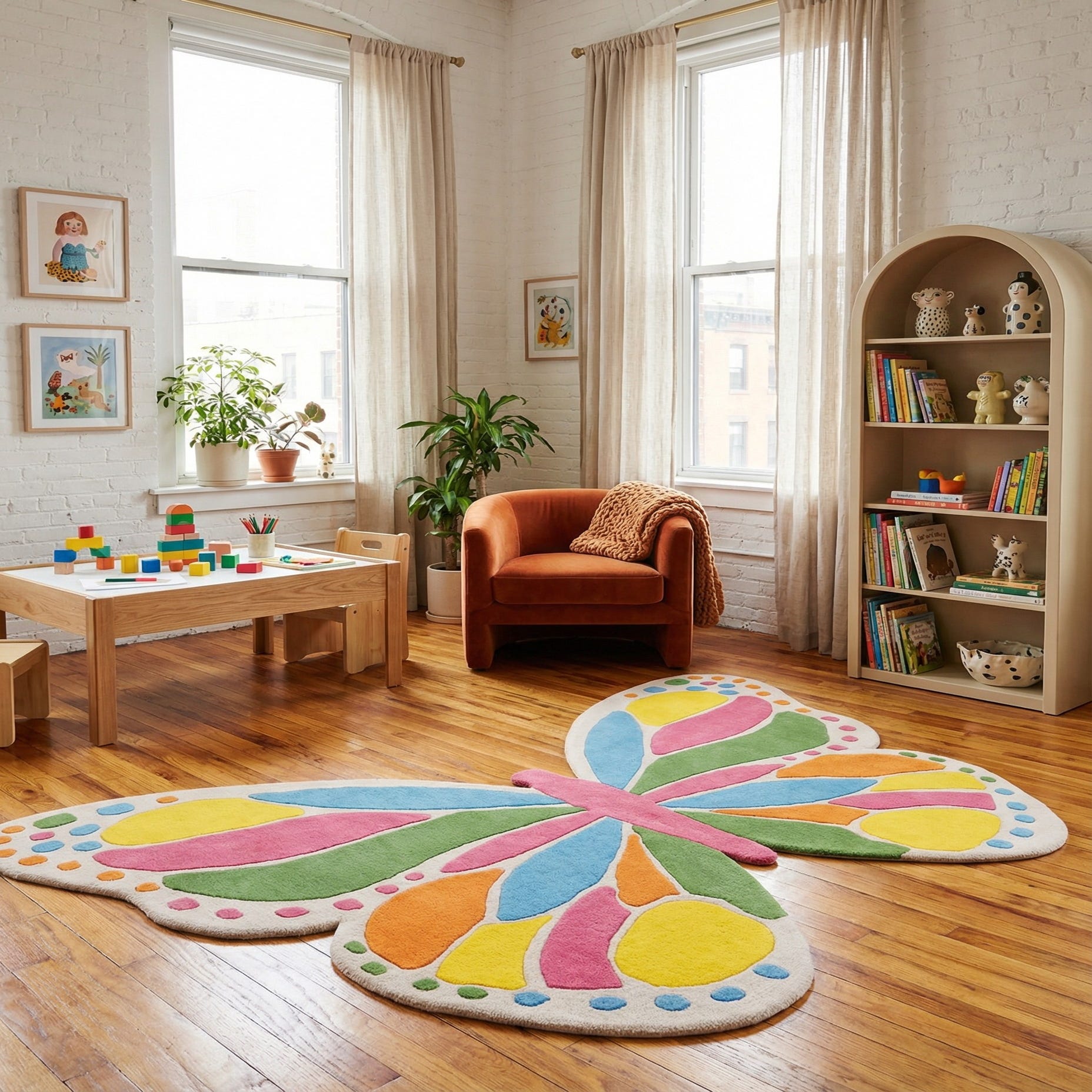 5' 5 x 8' Happy Rugs Butterfly Wool