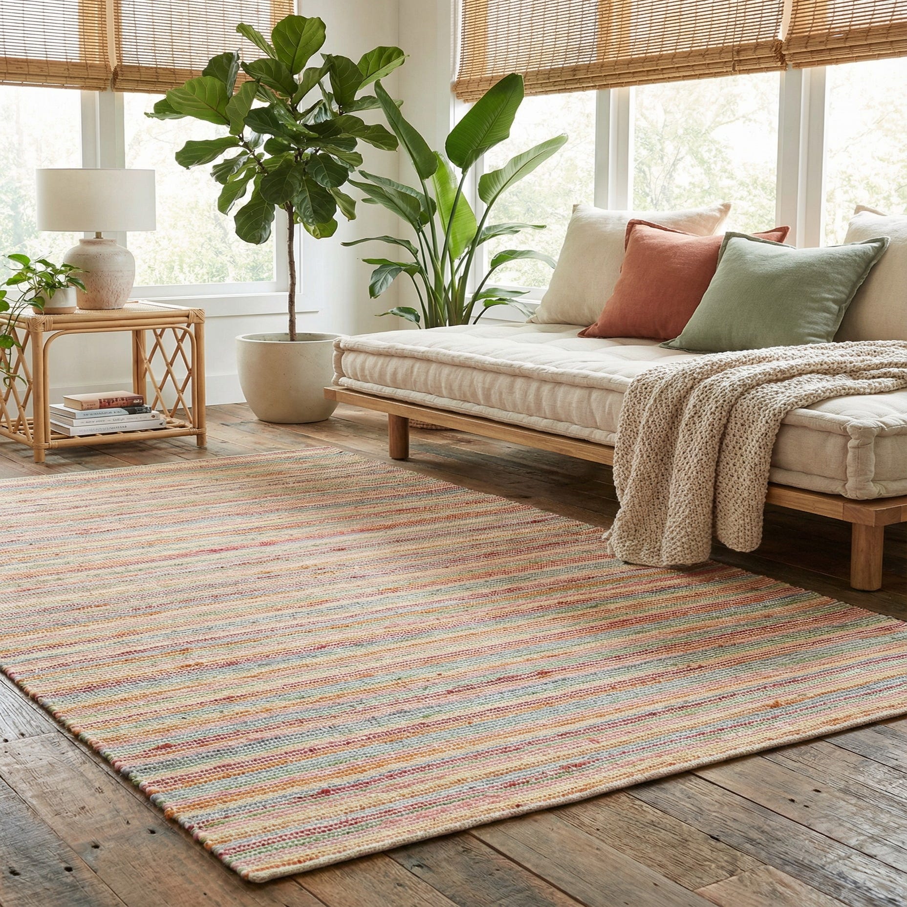 5' 1 x 8' Hand Woven Happy Rugs Rainbow Weave