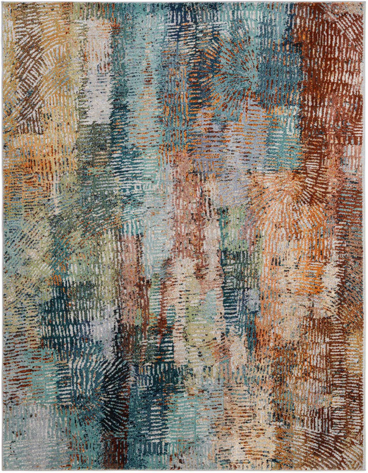 Primary color is Multi. Colors in this rug include: Multi, Blue, Gray, Light Blue, Terracotta, Orange.