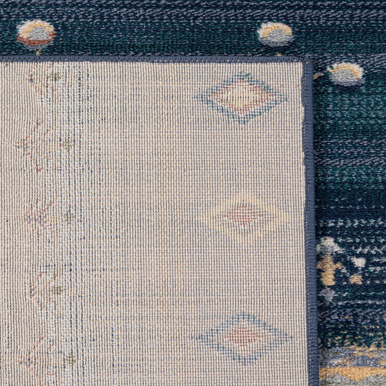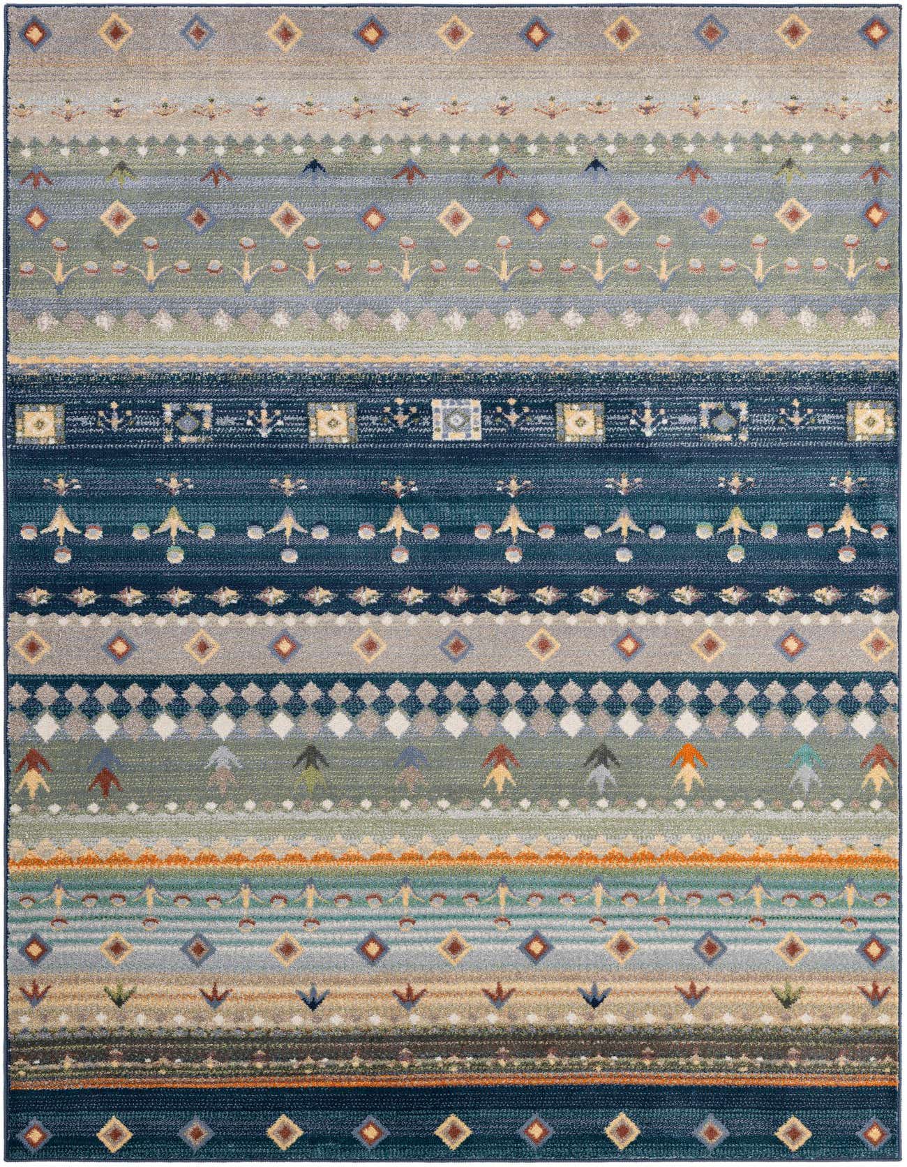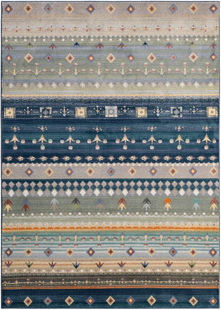 Primary color is Multi. Colors in this rug include: Multi, Beige, Brown, Blue, Ivory, Light Blue, Navy Blue.