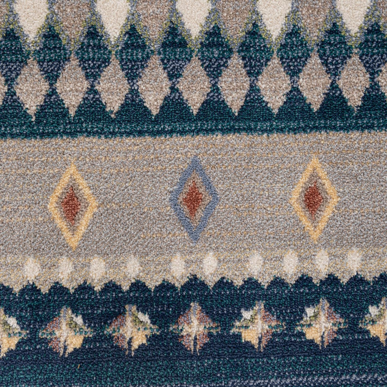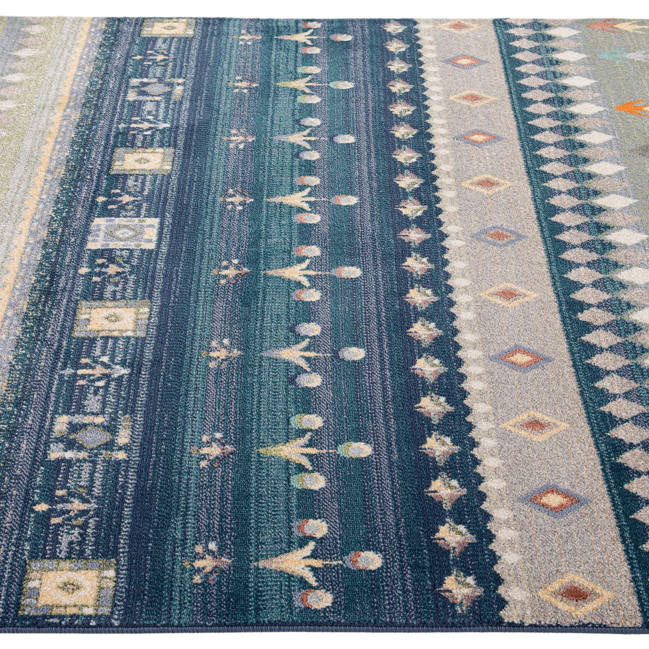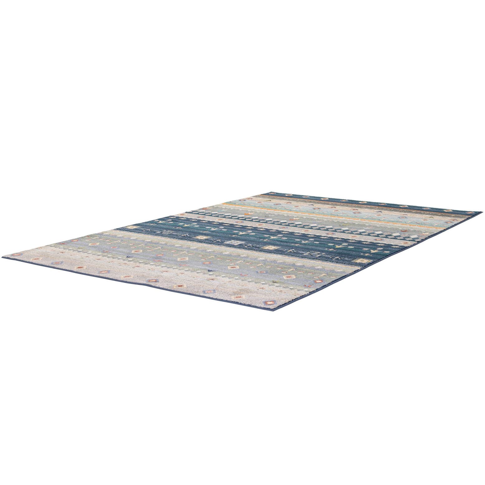 Primary color is Multi. Colors in this rug include: Multi, Beige, Brown, Blue, Ivory, Light Blue, Navy Blue.