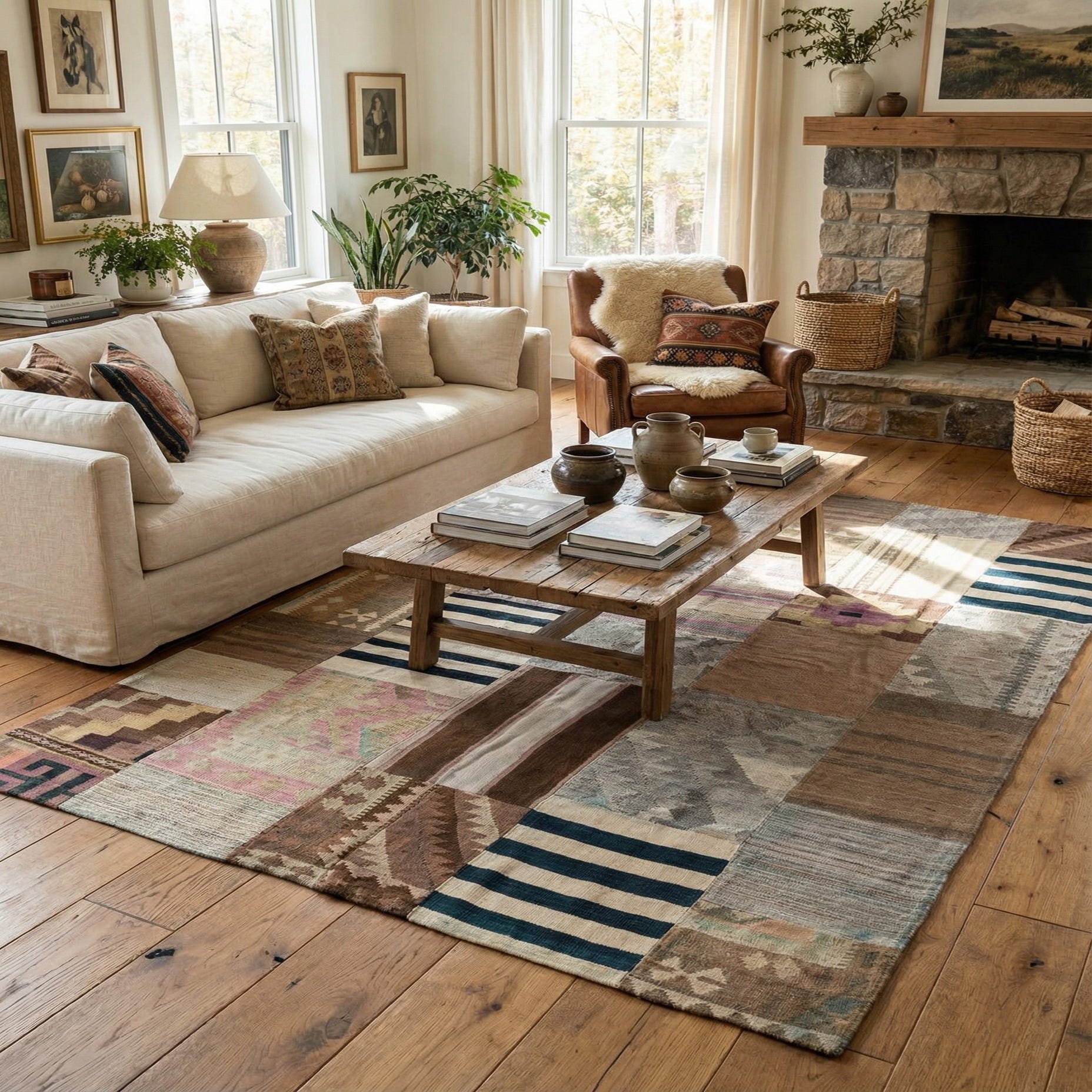 5' 2 x 7' 9 Hand Woven Kilim Patchwork Wool Rug