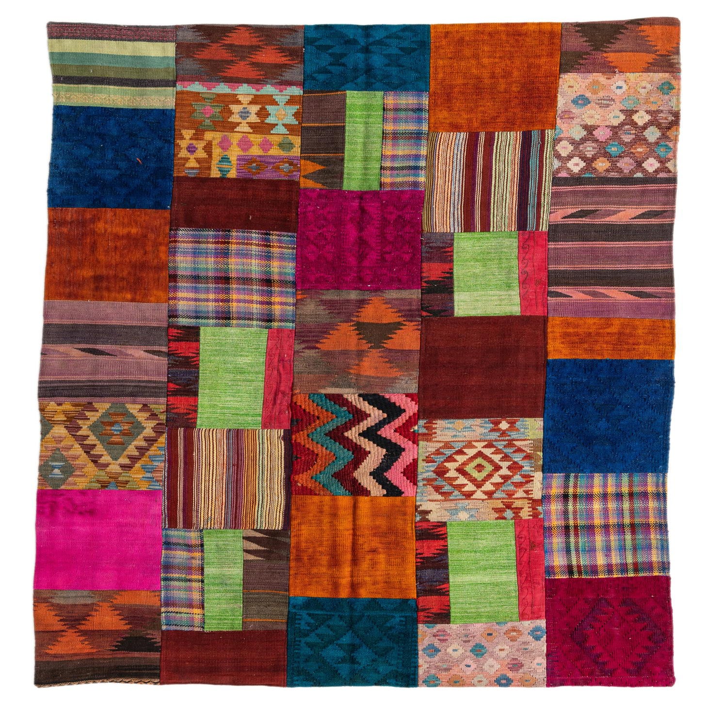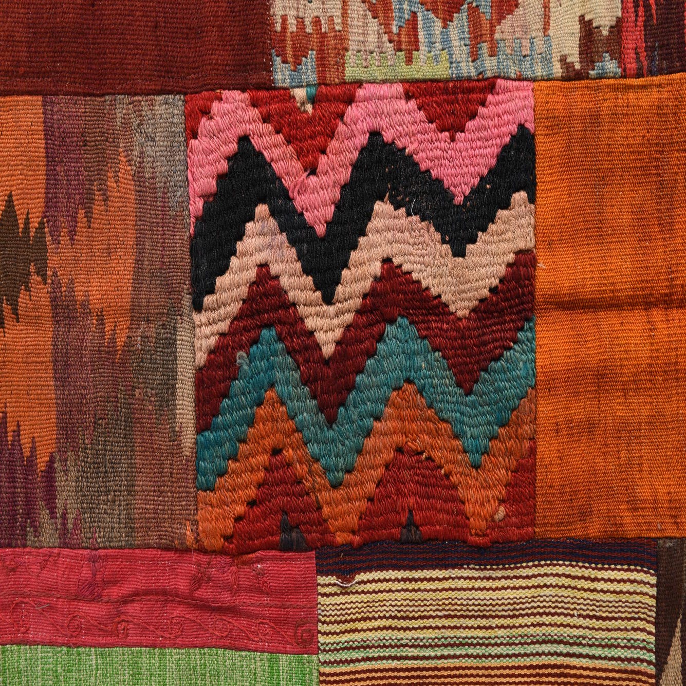 The flat-weave construction of the rug ensures a durable finish, suitable for high-traffic areas. The myriad of colors present in this piece allows for easy integration into a variety of interior design themes, from eclectic and bohemian spaces that embrace a mix of patterns and hues, to more minimalist settings where the rug can serve as a focal point to enliven the room. This Kilim Patchwork rug could complement furnishings with natural wood tones, contrasting modern pieces, or act as a bridge between traditional and contemporary decor elements.