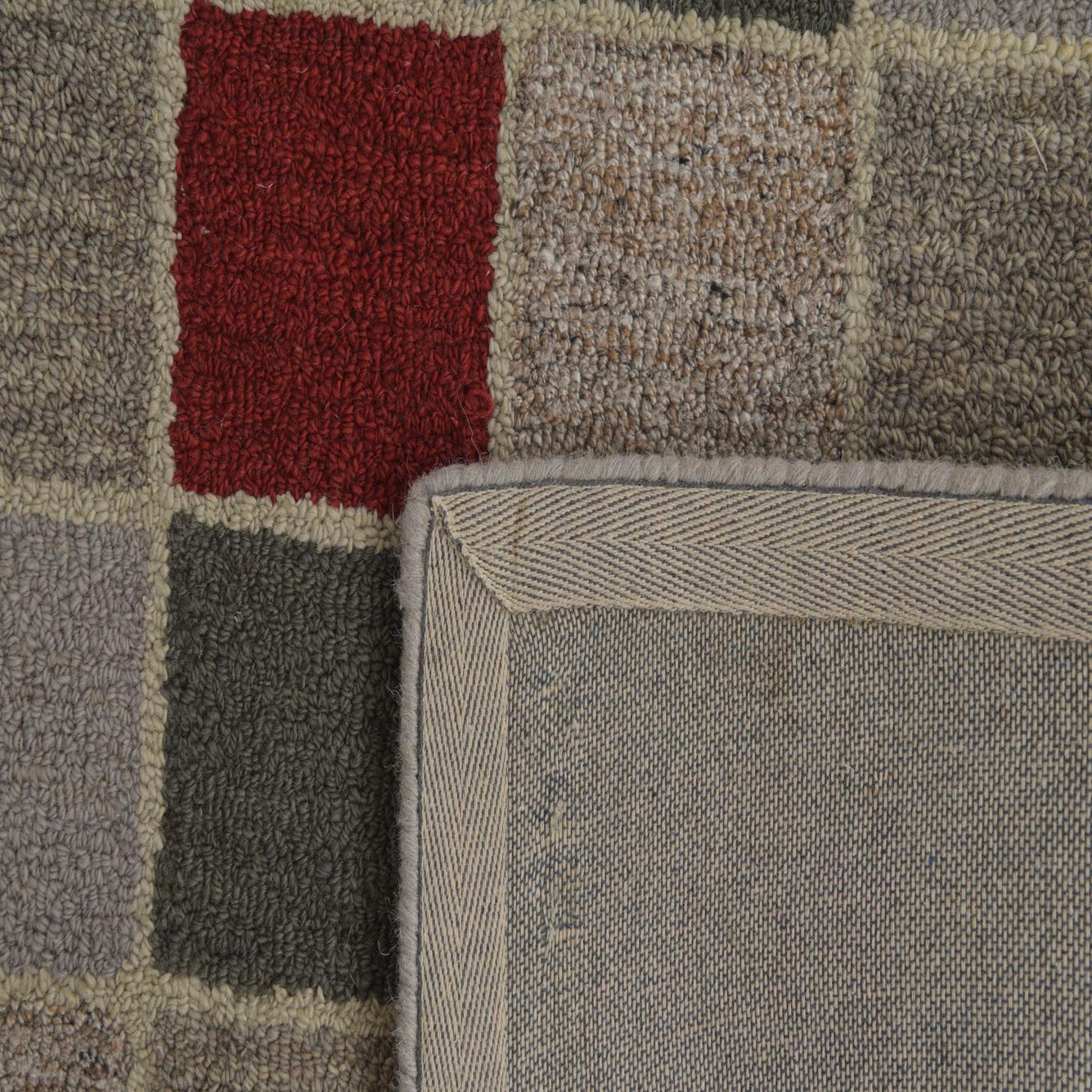 The wool pile feels soft and inviting underfoot, with the hand-tufted construction providing a subtle, tactile depth across the surface. Use it to define a living area in a modern or transitional room, add color and pattern to a neutral home office, or position it under a dining table where its graphic layout can anchor seating. Pair with charcoal or ivory upholstery and warm wood finishes to complement the neutrals, or echo the red accents with throw pillows or art for a coordinated, intentional look.