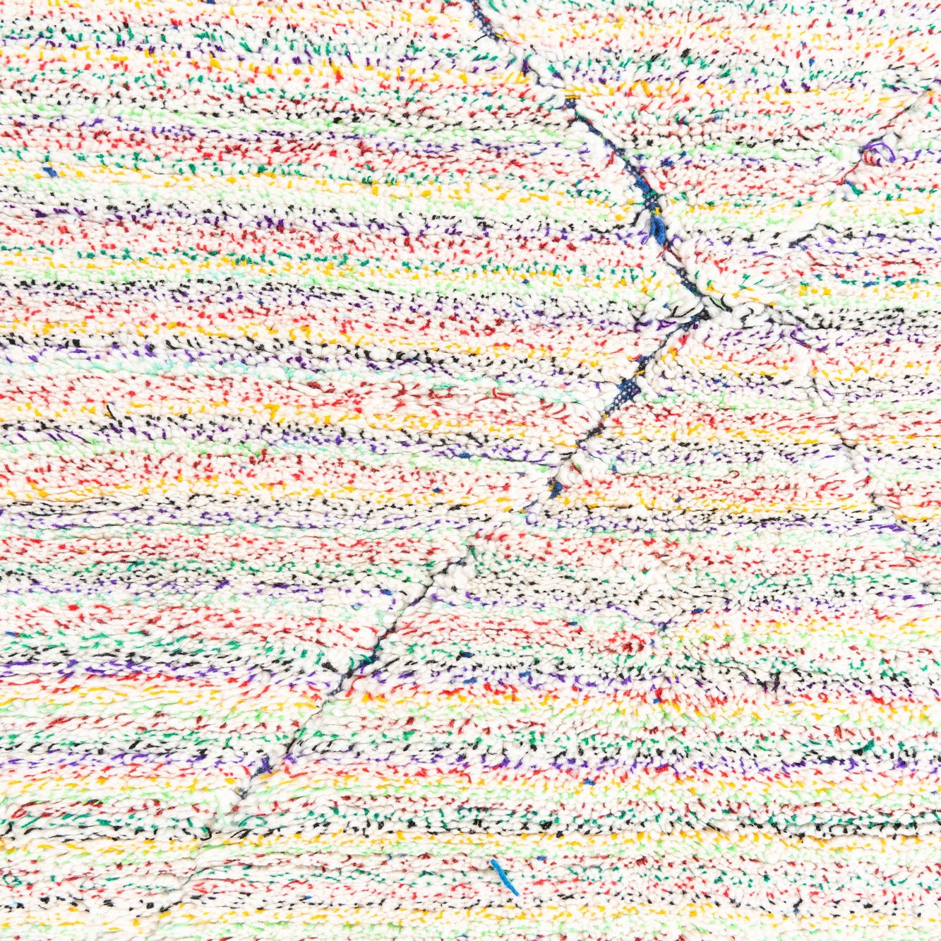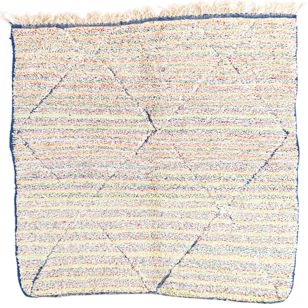 A 5x8 rectangular multi-colored shag rug with a tribal diamond pattern, ideal for a living room or bedroom.
