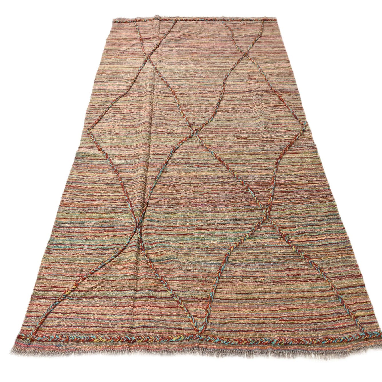 Ideal for interiors that embrace eclectic, bohemian, or rustic aesthetics, this rug can easily adapt to both modern and traditional spaces. Consider it a focal point in a living room with neutral furnishings where it can introduce a subtle yet significant color spectrum, or as a complementary piece in a vibrant setting, balancing out more saturated decorative elements. The rich texture and color depth of the Moroccan Collection rug would be equally at home in an artist's studio or anchoring an intimate dining area with its earthy and artisanal ambiance.