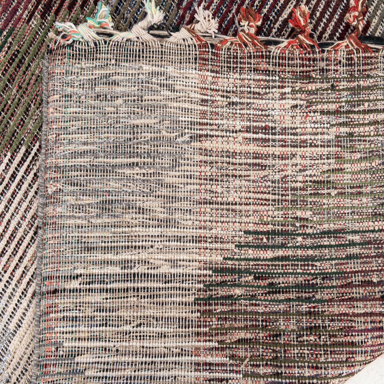 Hand-knotted in 100% wool, this Moroccan-inspired rug presents a series of stacked diamond and zigzag motifs across a multi background. Bands of burgundy, olive, light blue and brown weave alongside ivory, beige and gray to create a layered, tonal effect that reads slightly faded and lived-in. The tightly woven construction produces a low-profile, slightly nubby wool texture that feels warm underfoot, and hand-tied fringe along the short ends adds a casual, handcrafted finish.