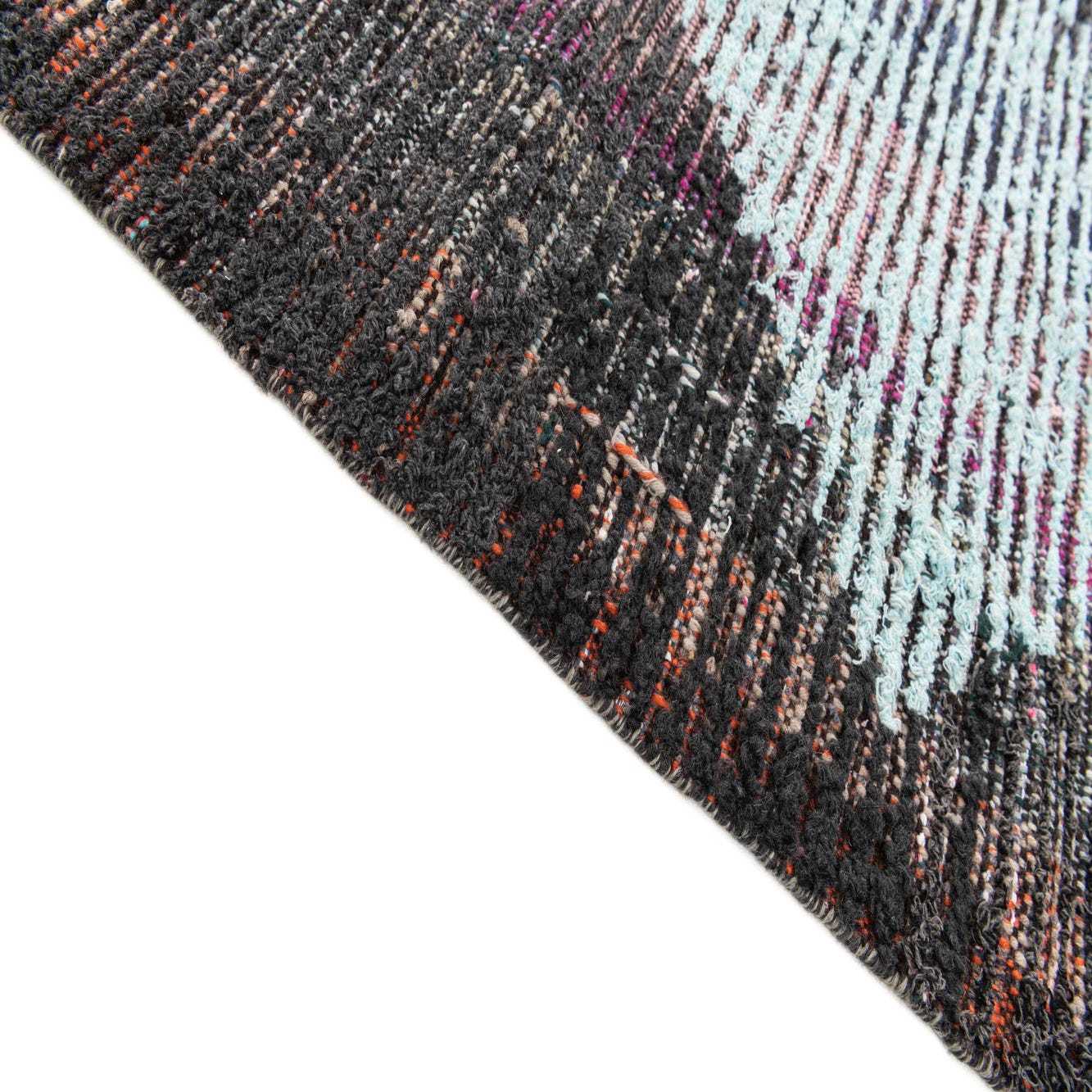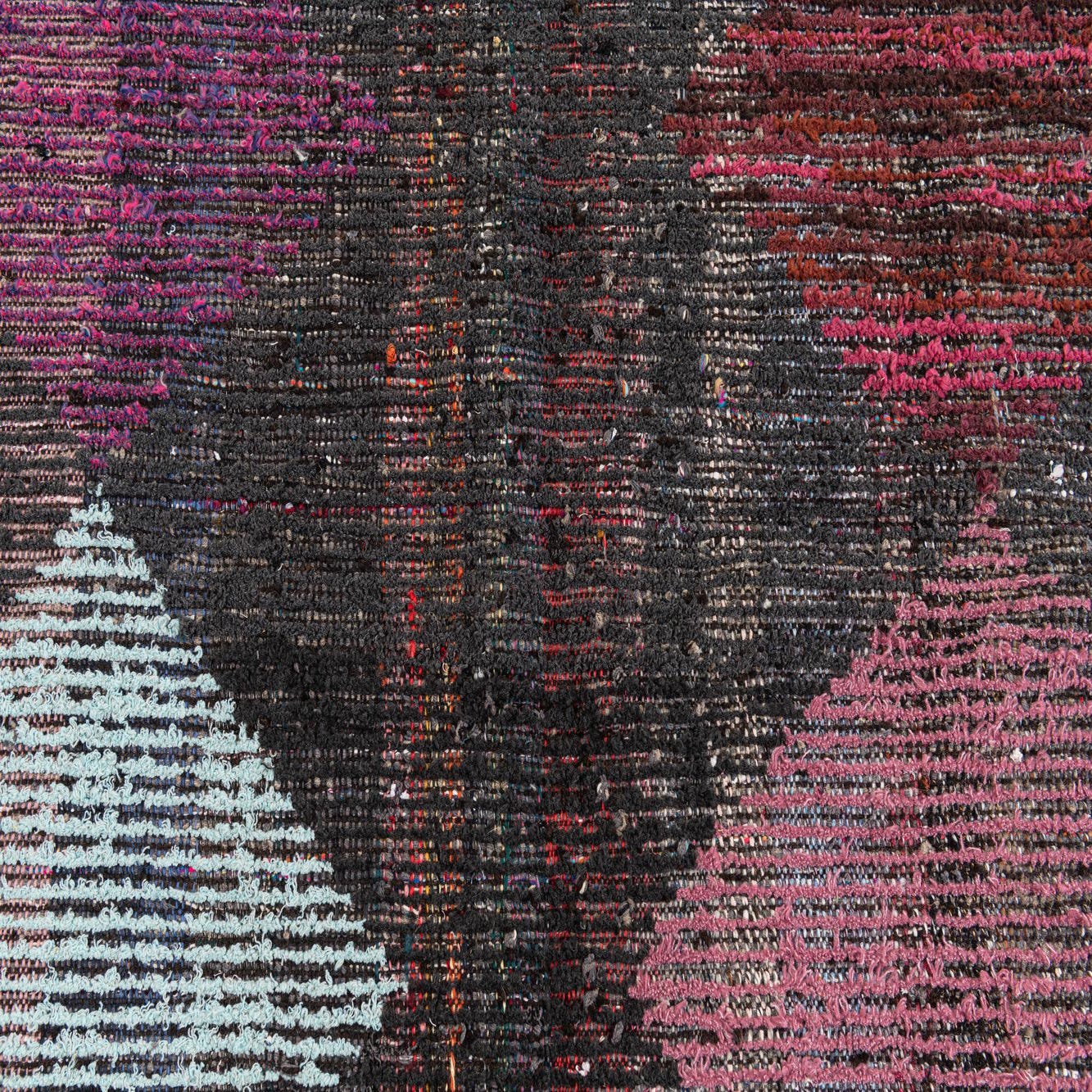 Primary color is Multi. Colors in this rug include: Multi, Black, Brown, Light Blue, Pink, Terracotta, Blue.