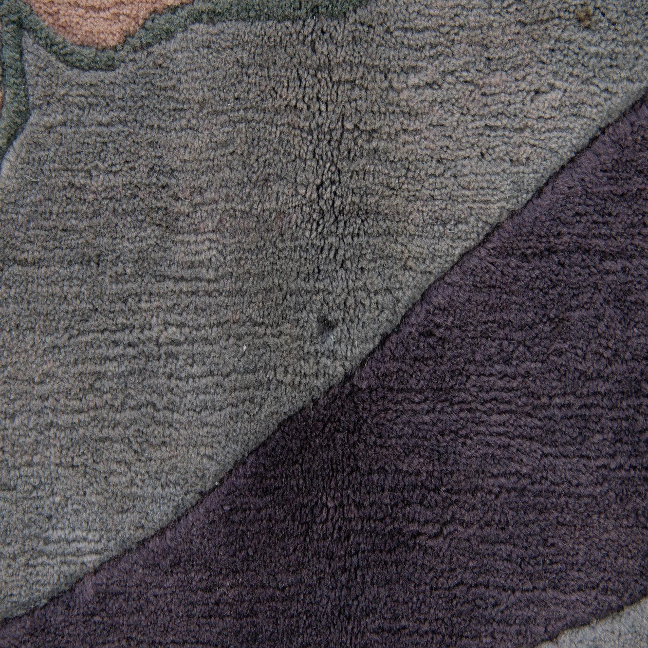 Reach down and you'll feel the warm, slightly springy wool underfoot; the hand-knotted construction creates gentle variations in pile that add tactile depth and definition to the pattern. This rug is well-suited to a living room beneath a sofa and coffee table, a bedroom layered at the foot of a bed, or an entry that benefits from a visual focal point. Pair it with natural wood furniture, muted leathers or linen upholstery and accents in muted jewel tones or soft metallics to bring out the violet and blue highlights.