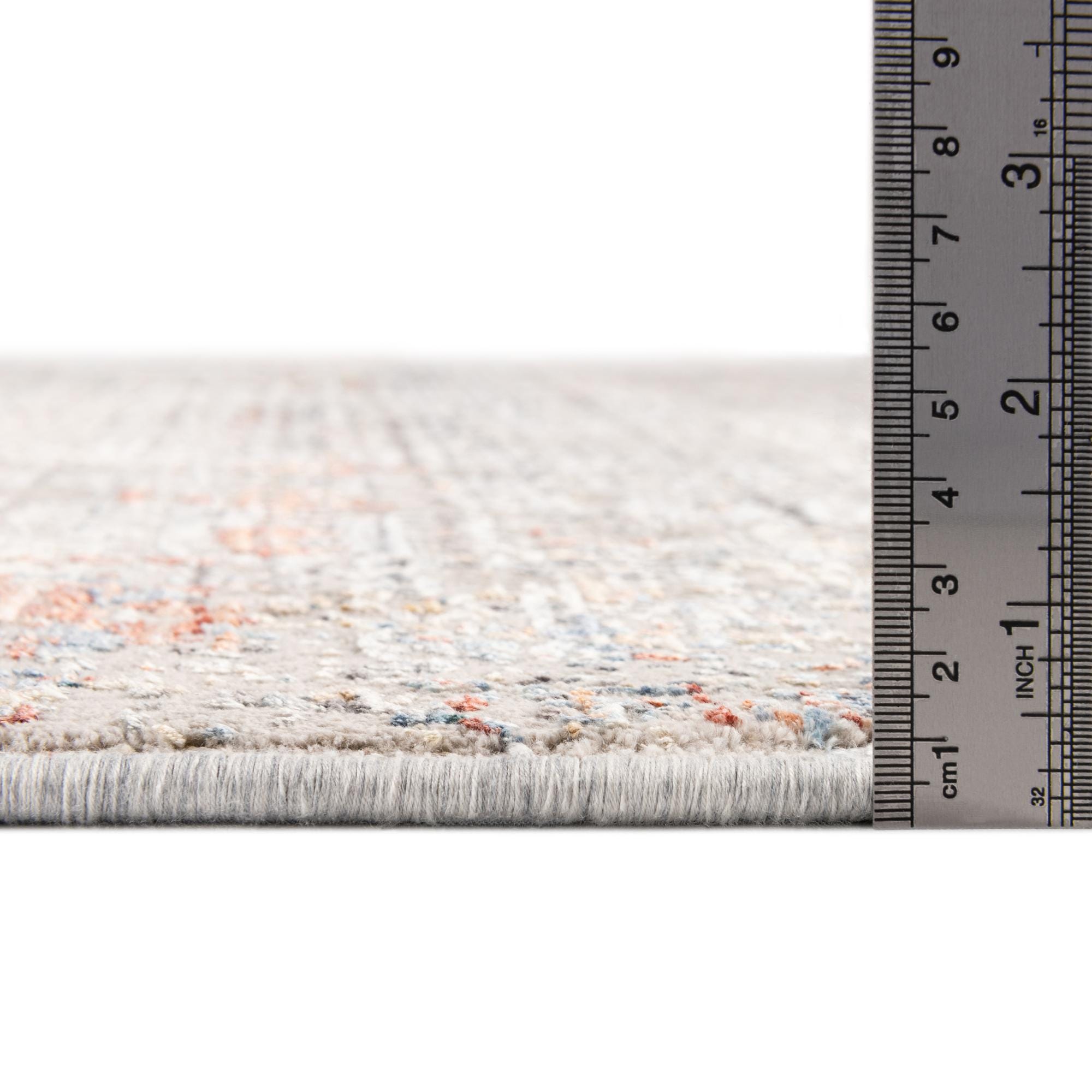 Primary color is Multi. Colors in this rug include: Multi, Beige, Blue, Ivory, Light Blue, Gray, Peach.