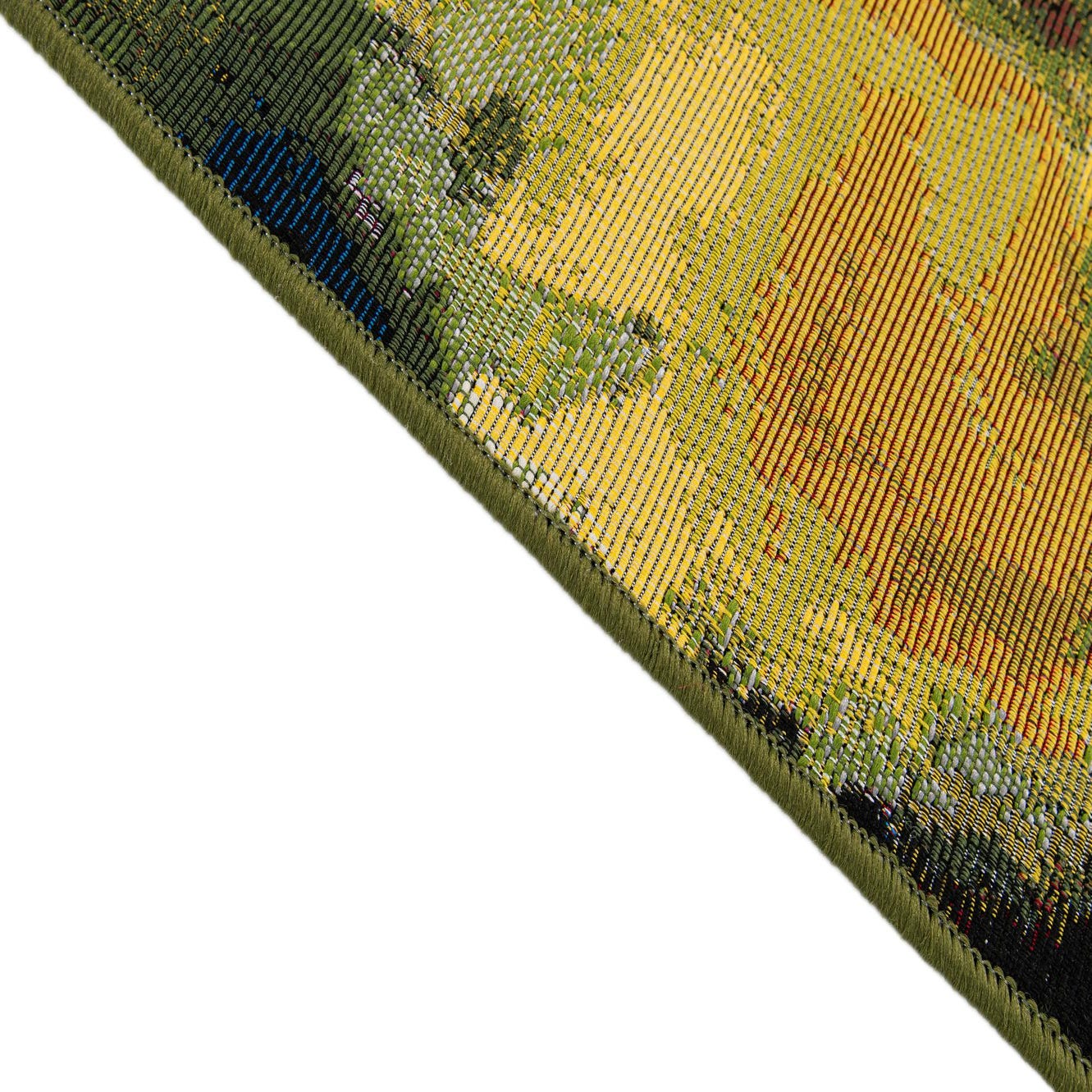 Primary color is Multi. Colors in this rug include: Multi, Beige, Black, Blue, Brown, Green, Light Blue, Red, Yellow, Ivory.