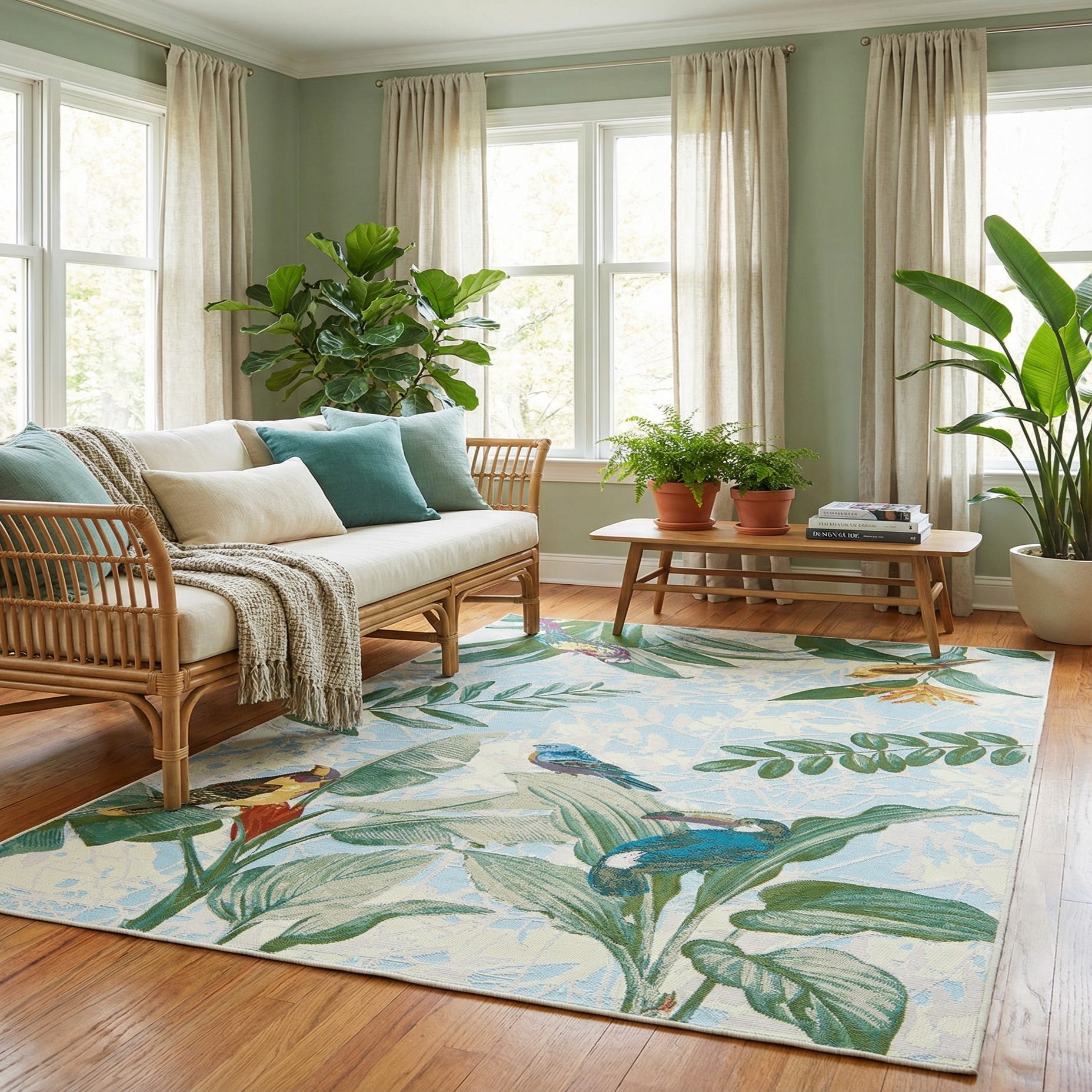 5' 3 x 8' Washable Botanical Indoor / Outdoor Rug