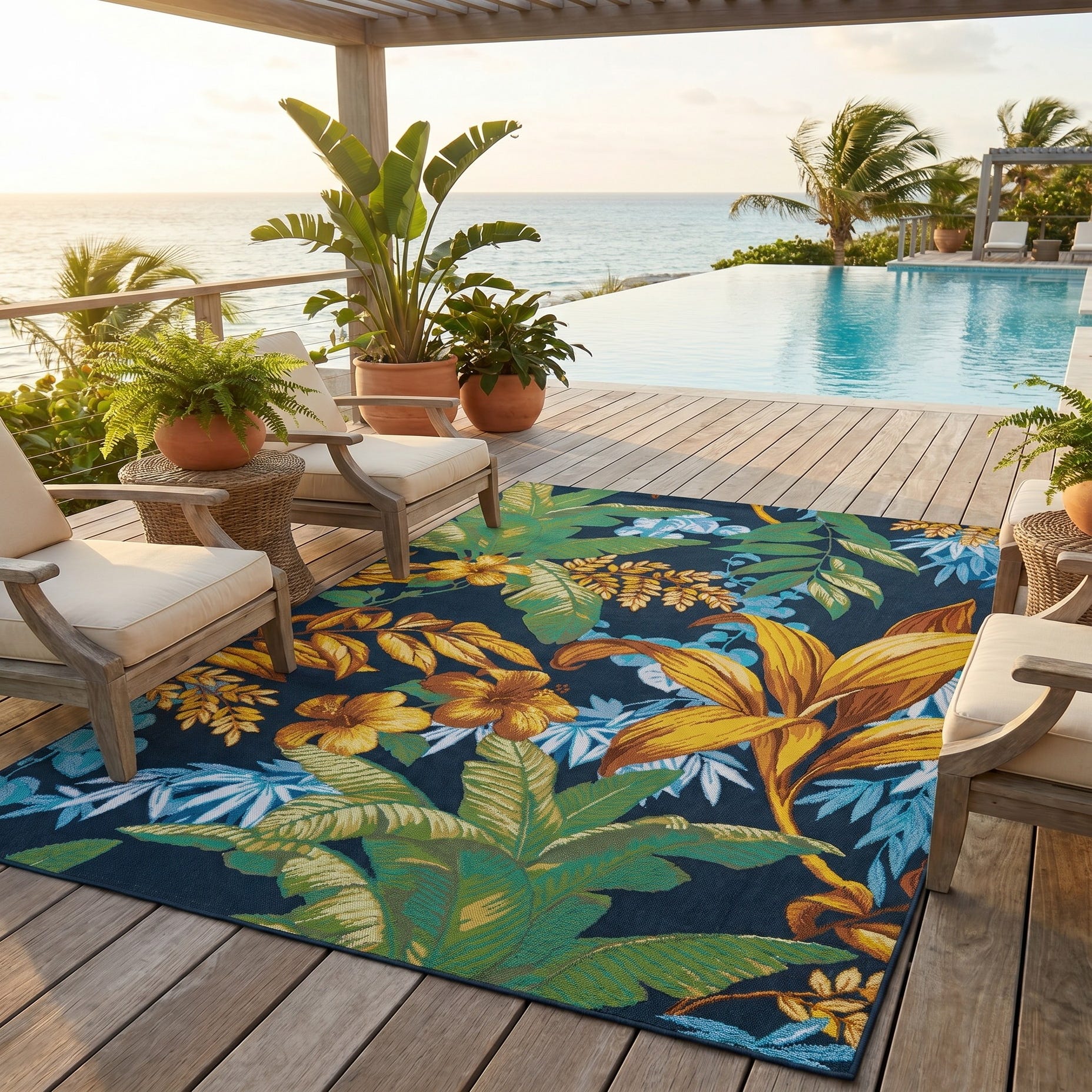5' 3 x 8' Easy-Clean Botanical Indoor / Outdoor Rug