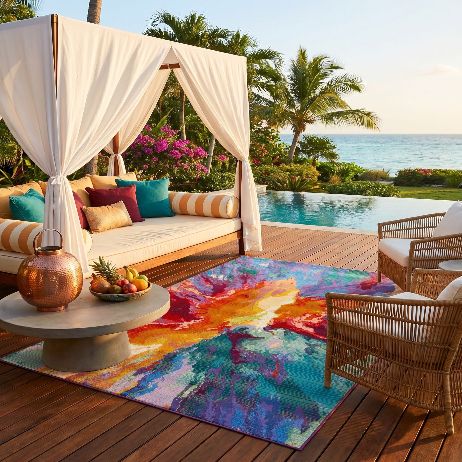 5' 3 x 8' Easy-Clean Modern Indoor / Outdoor Rug