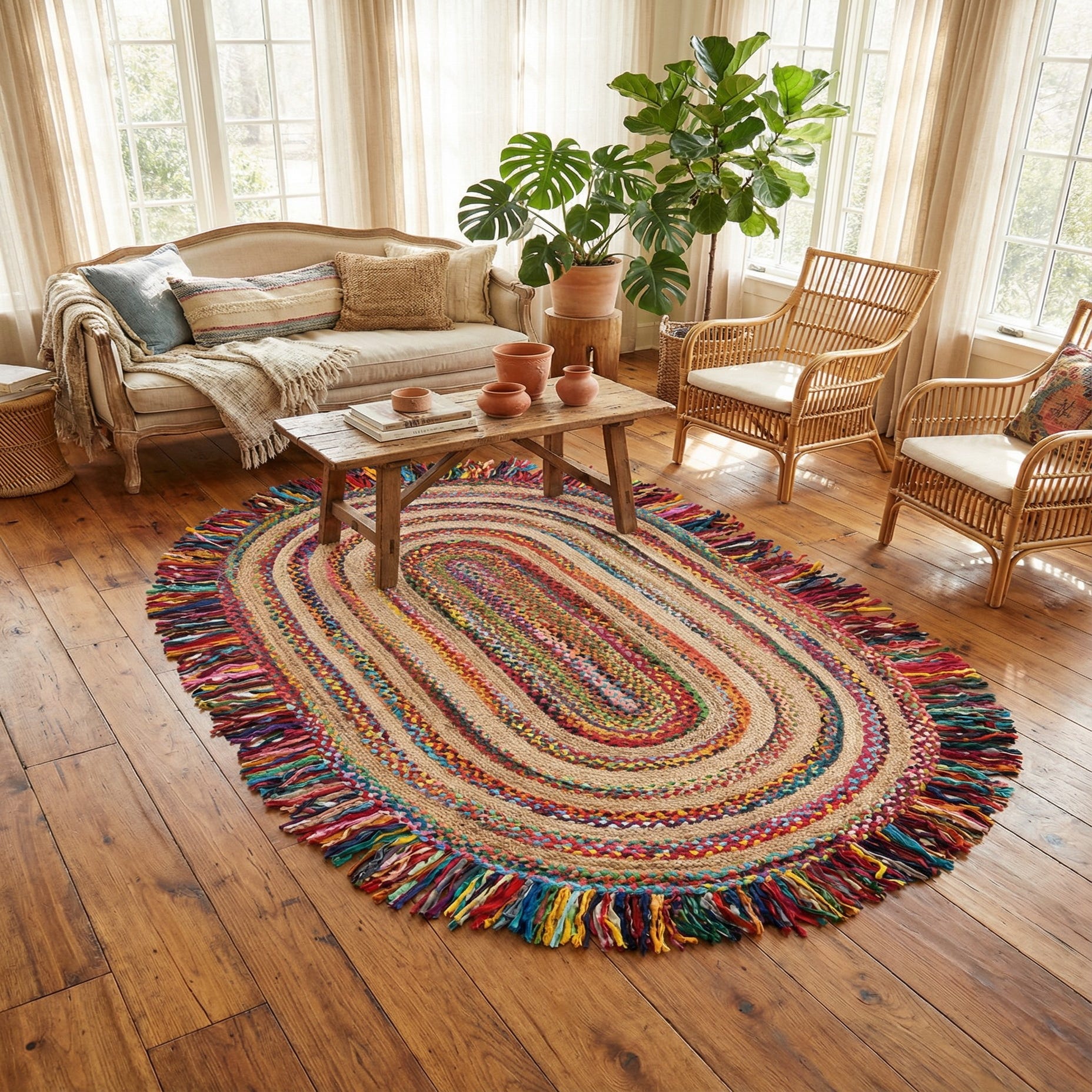 5' 1 x 8' Hand Braided Chindi Jute Oval Rug
