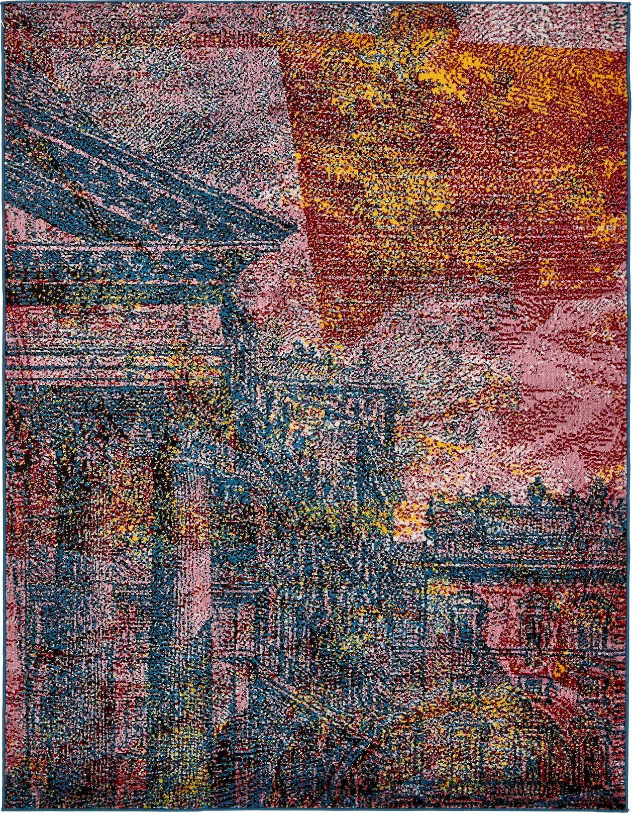 Primary color is Multi. Colors in this rug include: Multi, Black, Blue, Navy Blue, Red, Yellow, Pink, Light Blue, Ivory.
