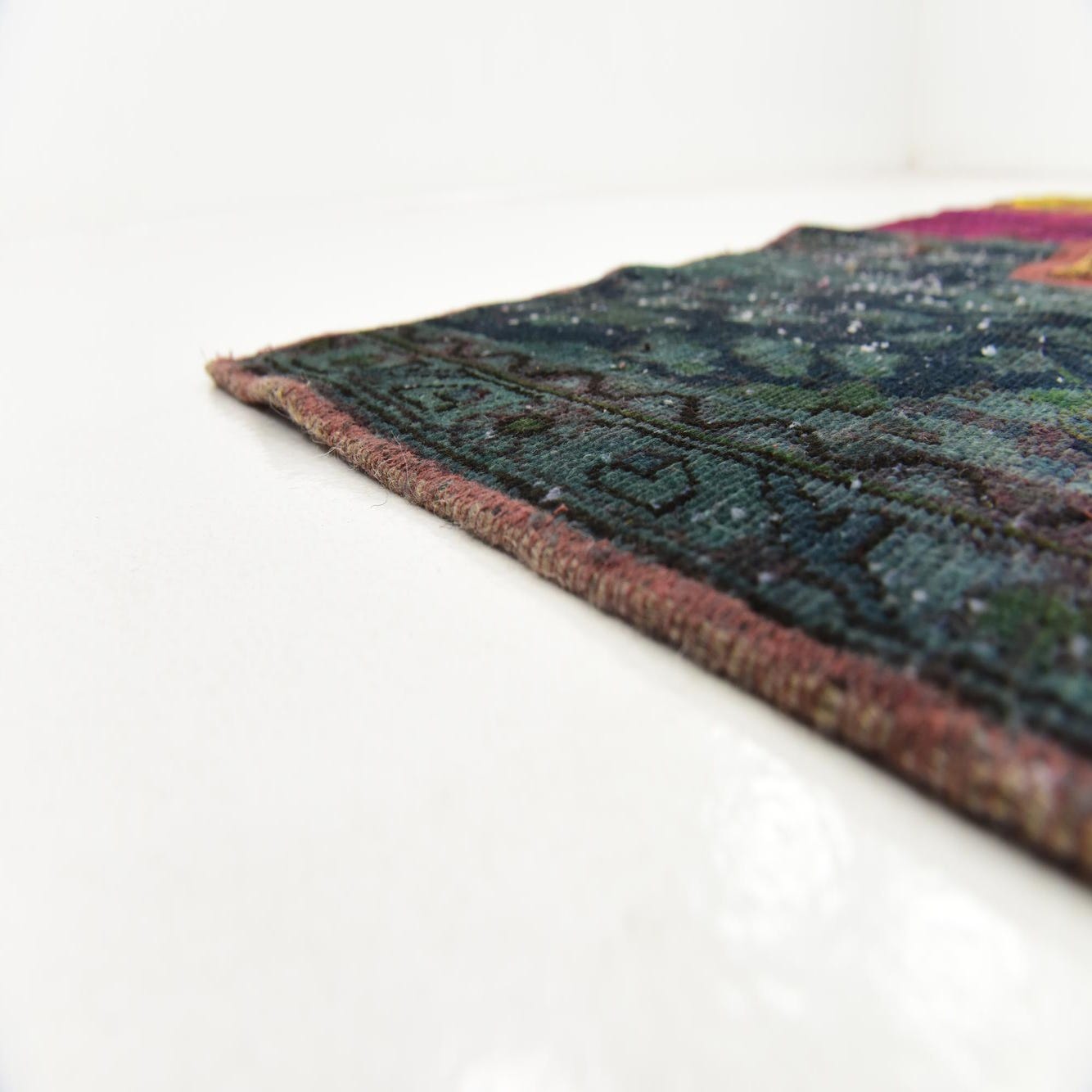 This Persian Ultra Vintage rug is an antique Persian Rug that has been washed, over-dyed, and then shaved down to a low pile. Look at the detail pictures to fully appreciate the uniqueness of this piece.