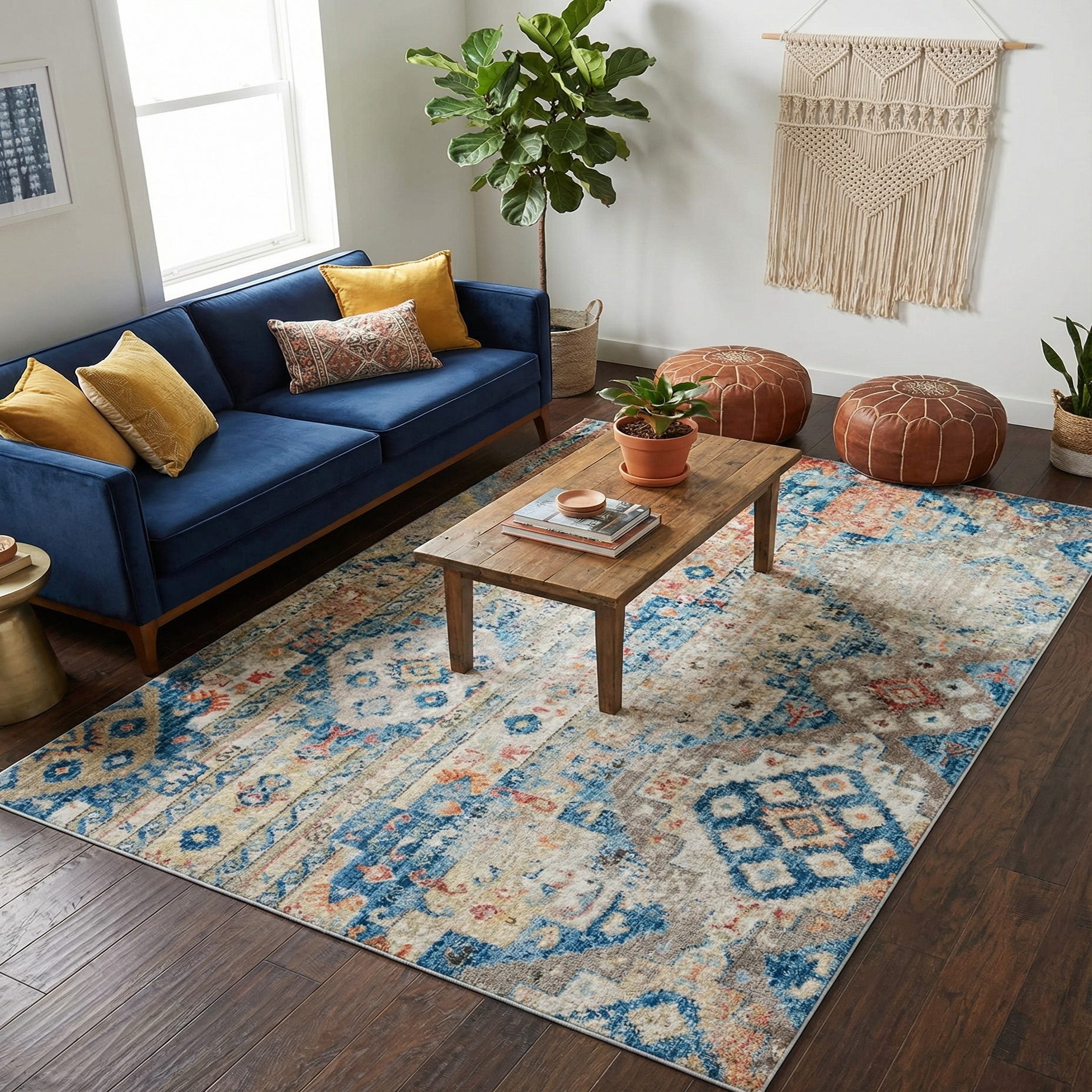 Notably stain-resistant and shed-free, this rug is designed to maintain its visual allure and tactile quality with minimal maintenance. Its versatility makes it suitable for an array of environments including, but not limited to, transitional, modern, eclectic, or even bohemian settings. Whether anchoring a living room, defining a dining space, or adding warmth to a bedroom, this Vega Collection rug is poised to elevate any space with its balanced blend of color and pattern.
