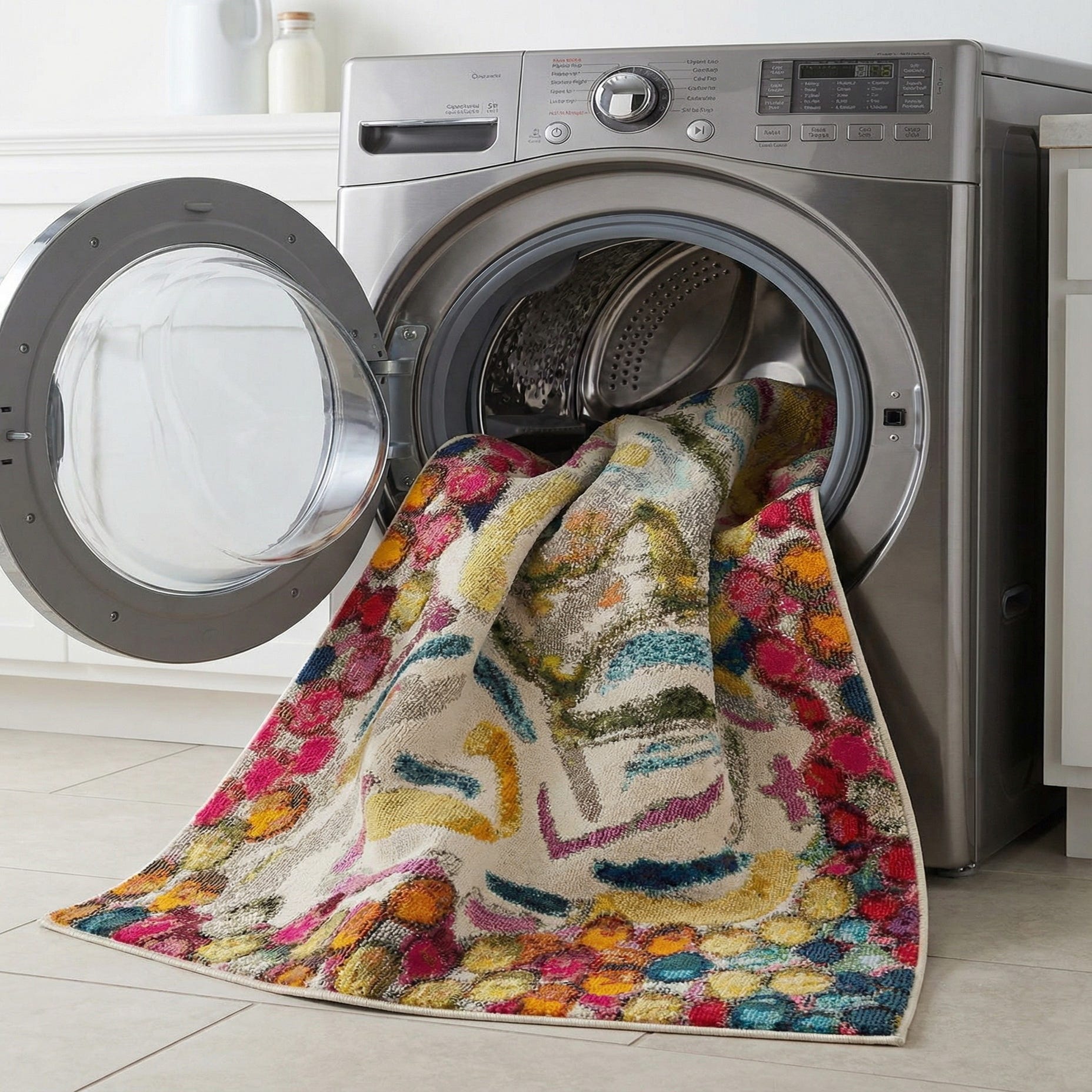 This rug works well as a color-forward anchor in a casual living room, a bright bedroom, or a home office where you want a playful focal point. Pair it with neutral upholstery to let the colors sing, or coordinate with mid-century and modern furnishings to add visual interest. It also layers nicely over hardwood or tile to bring warmth and pattern into entryways, sitting areas, or a kids’ play zone.