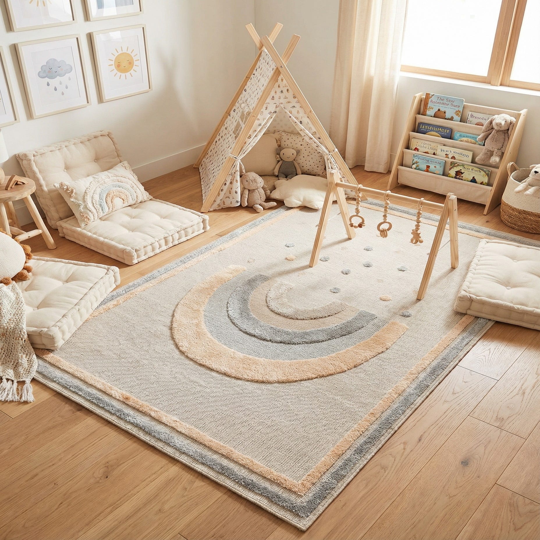Primary color is Multi. Colors in this rug include: Multi, Beige, Ivory, Gray, Peach.
