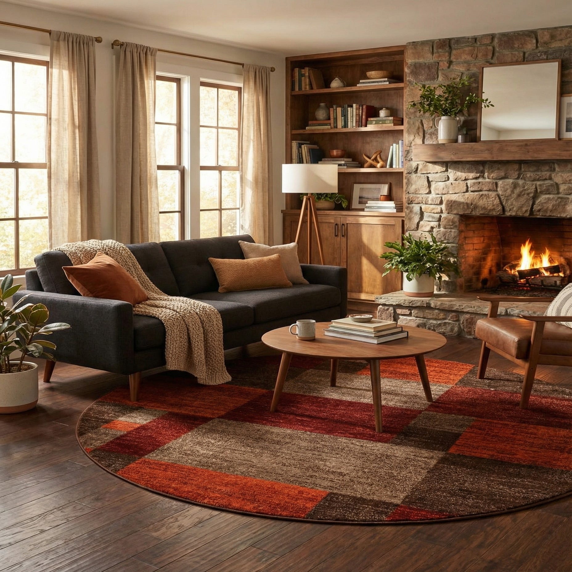 This piece works well beneath a round dining table or as an anchor for a small seating area, bringing warmth to living rooms, home offices, or entryways. Pair it with mid-century modern wood furniture and leather accents for a layered look, or use it to add color contrast against neutral upholstery and industrial metal fixtures.
