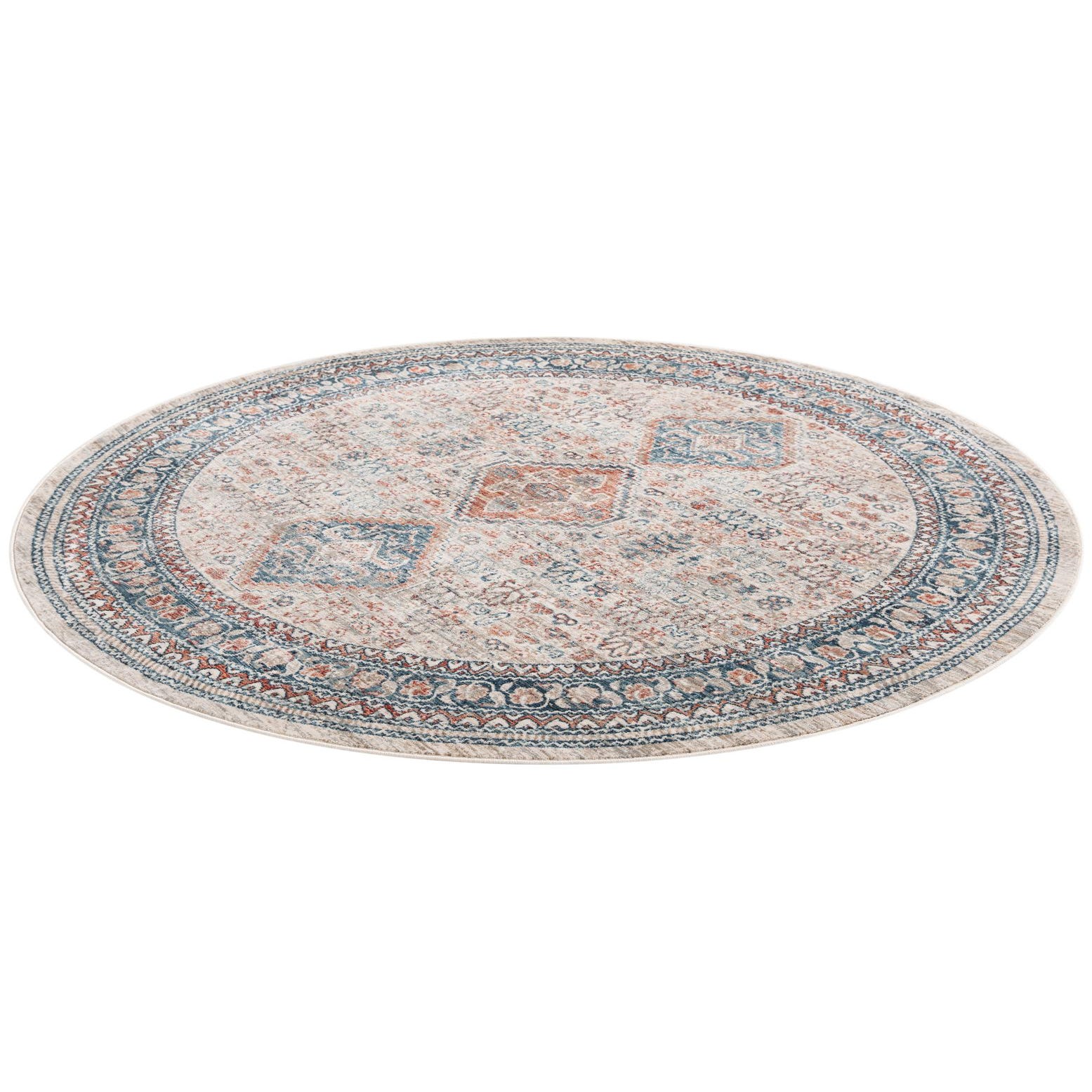 Primary color is Multi. Colors in this rug include: Multi, Beige, Blue, Light Blue, Light Brown, Rust Red, Terracotta.