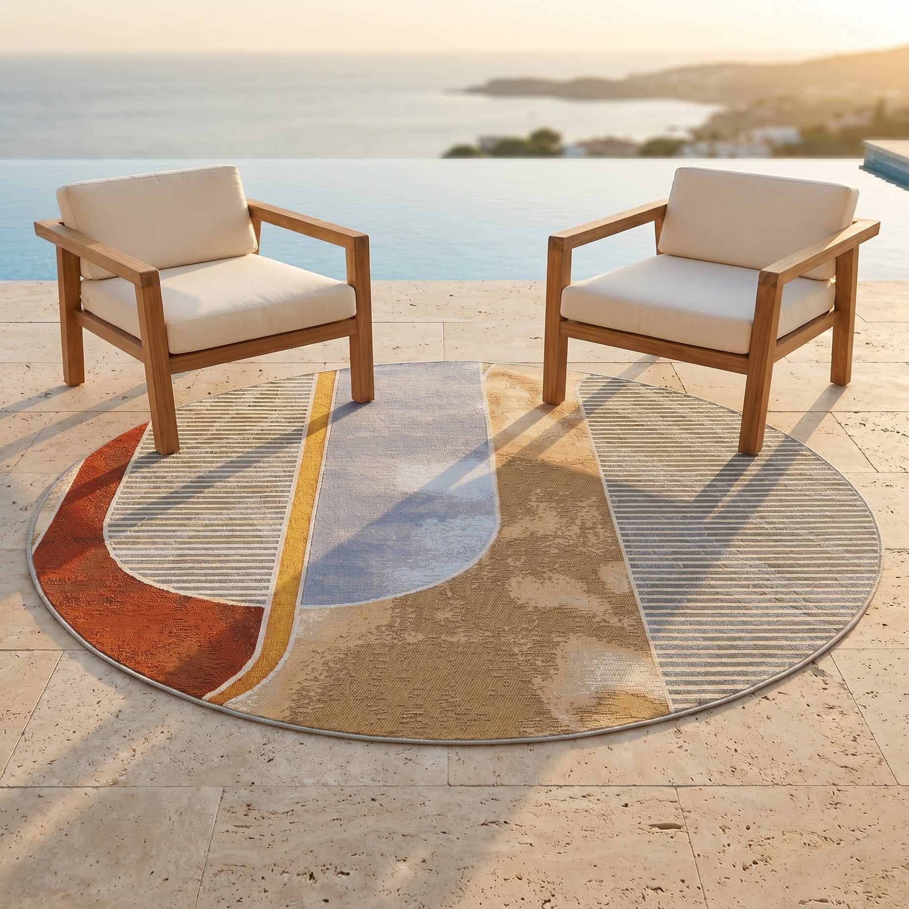 6' 1 x 6' 1 Easy-Clean Modern Indoor / Outdoor Round Rug