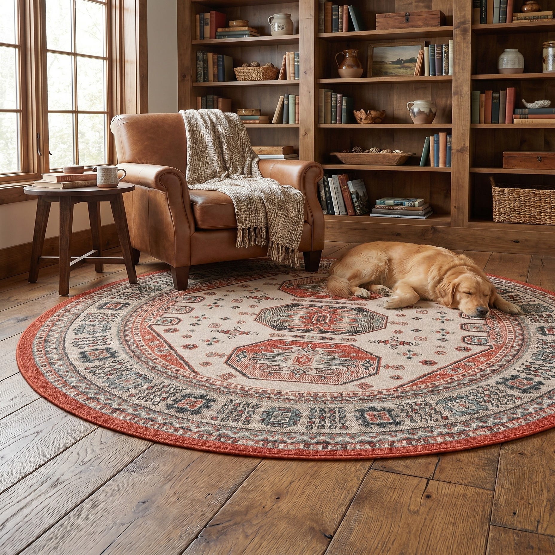 6' x 6' Easy-Clean Traditional Indoor / Outdoor Round Rug